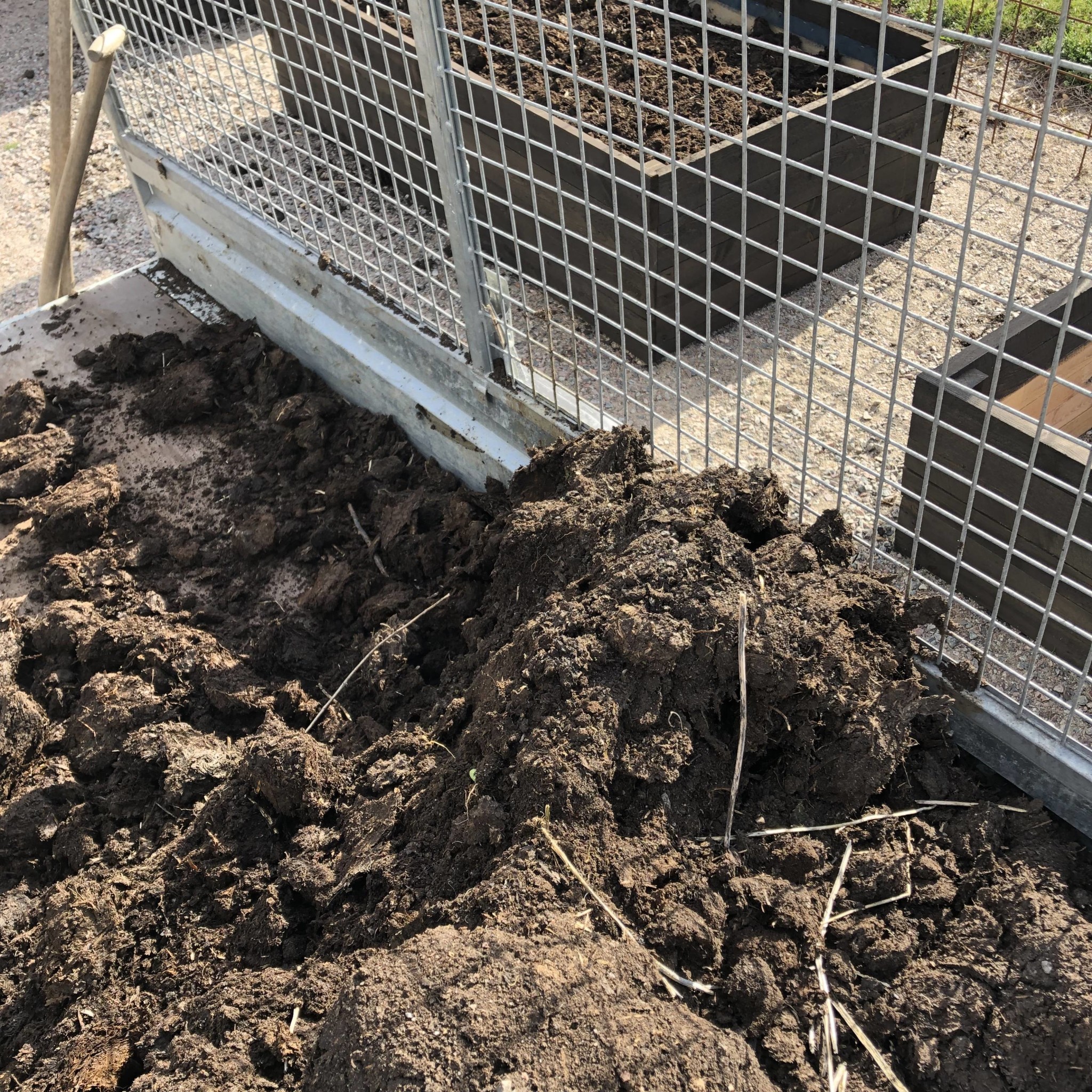 Grann-kobajs kommer i veckan till gödselplattan, för lite mixande med minigrävaren innan påfyllning i lådorna.