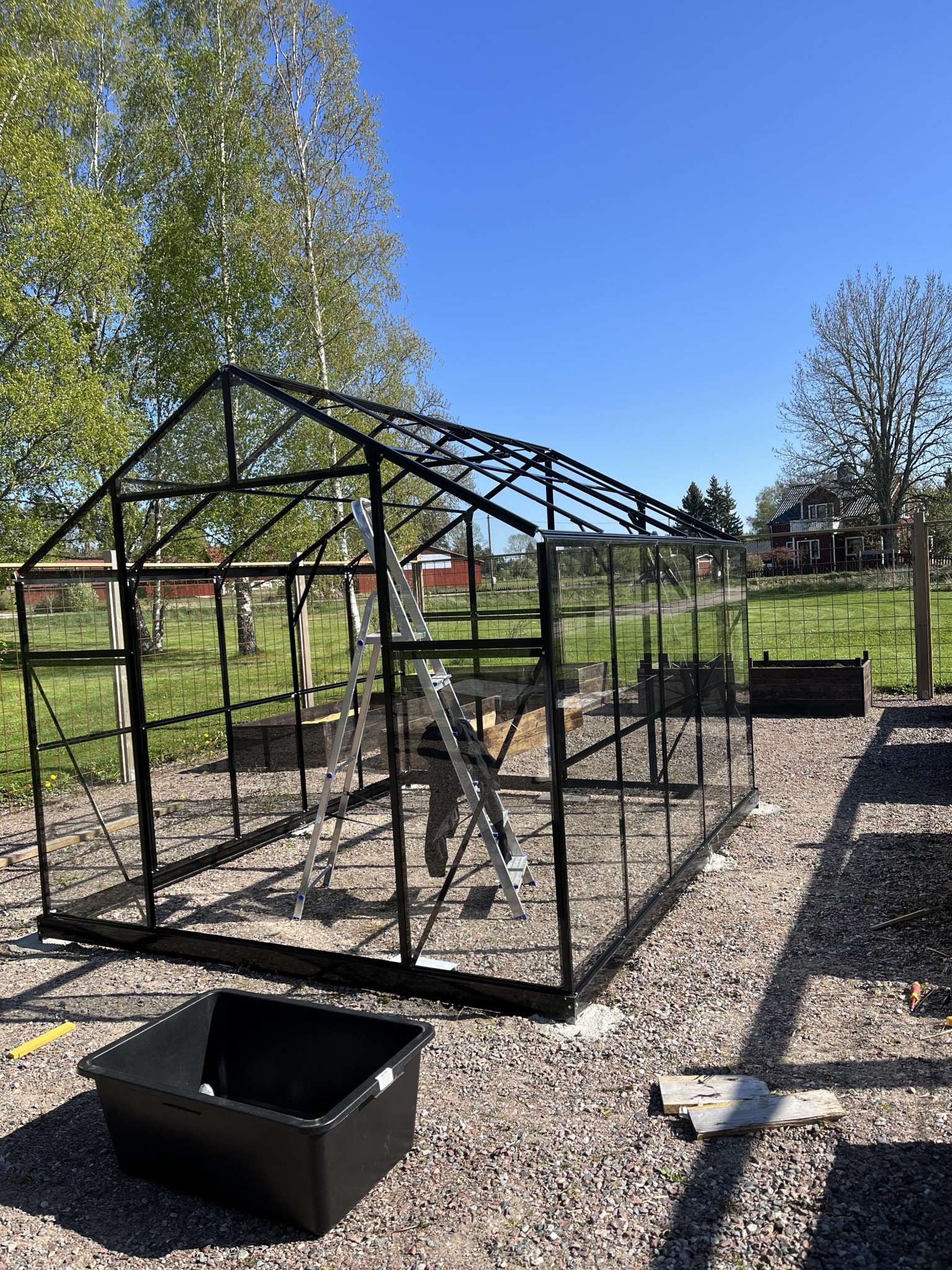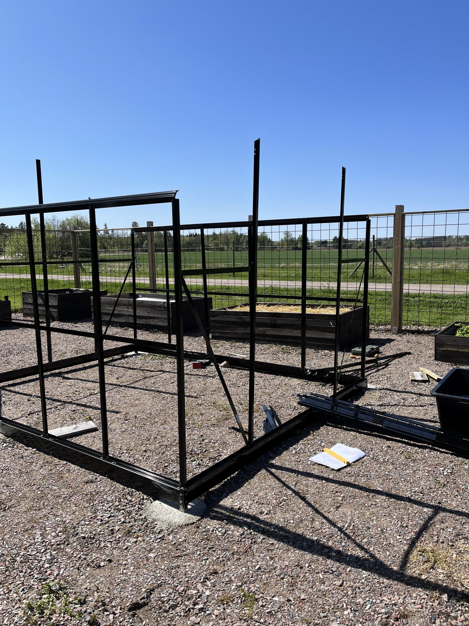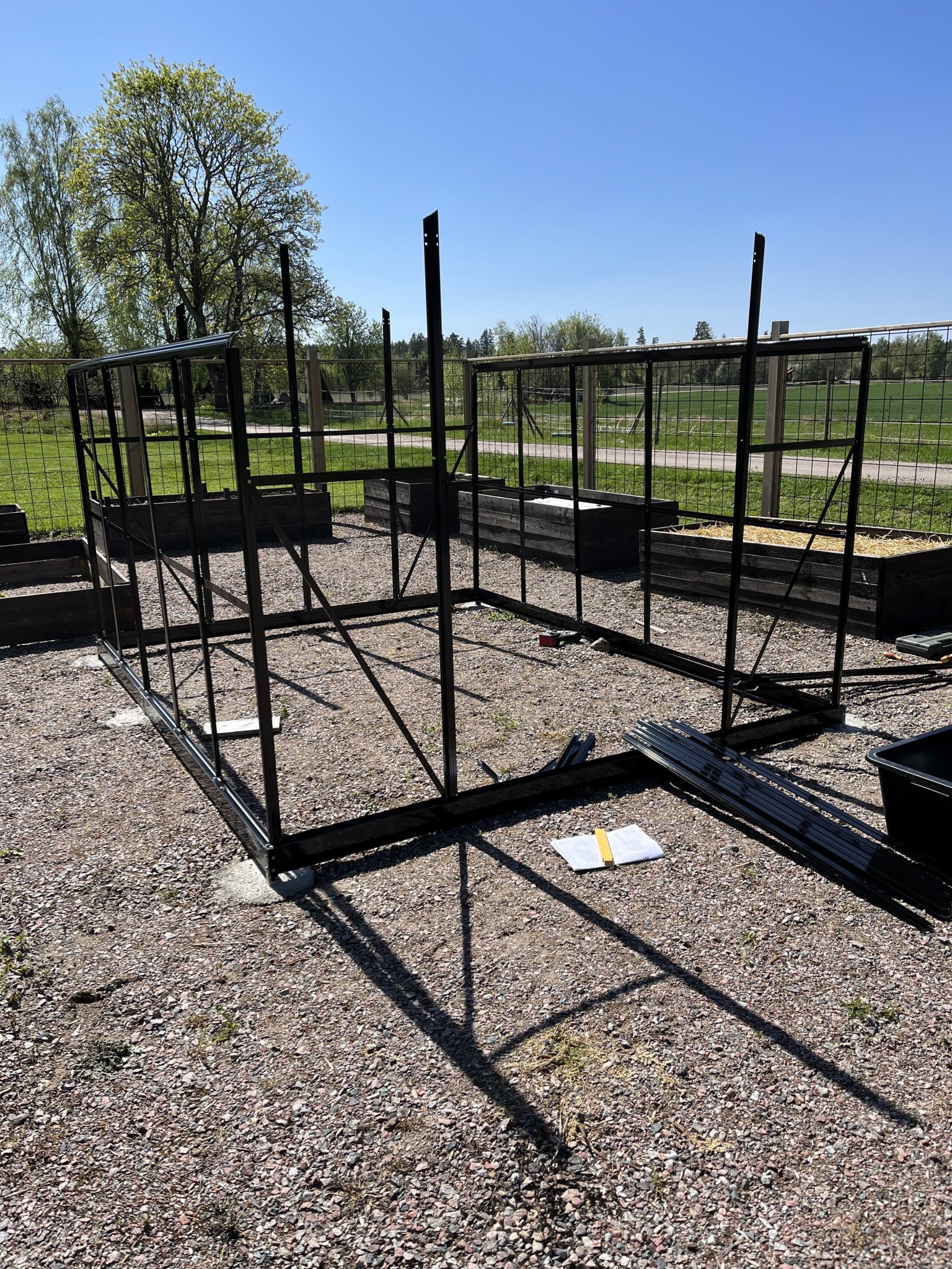 Dags för en updatering. Odlingsträdgården fortskrider. Fler lådor har byggts under vintern och vi blev dessutom med växthus för en vecka sedan. Ramen fick 6 st gjutna plintar vilket tog lite tid, men annars gick monteringen smärtfritt.