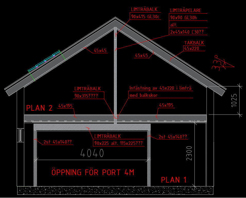 Sedan återstår förstås frågan för infästning av balken och upplag av den över garageporten men tänker att det är lättast att ta reda på balkstorlek först.
