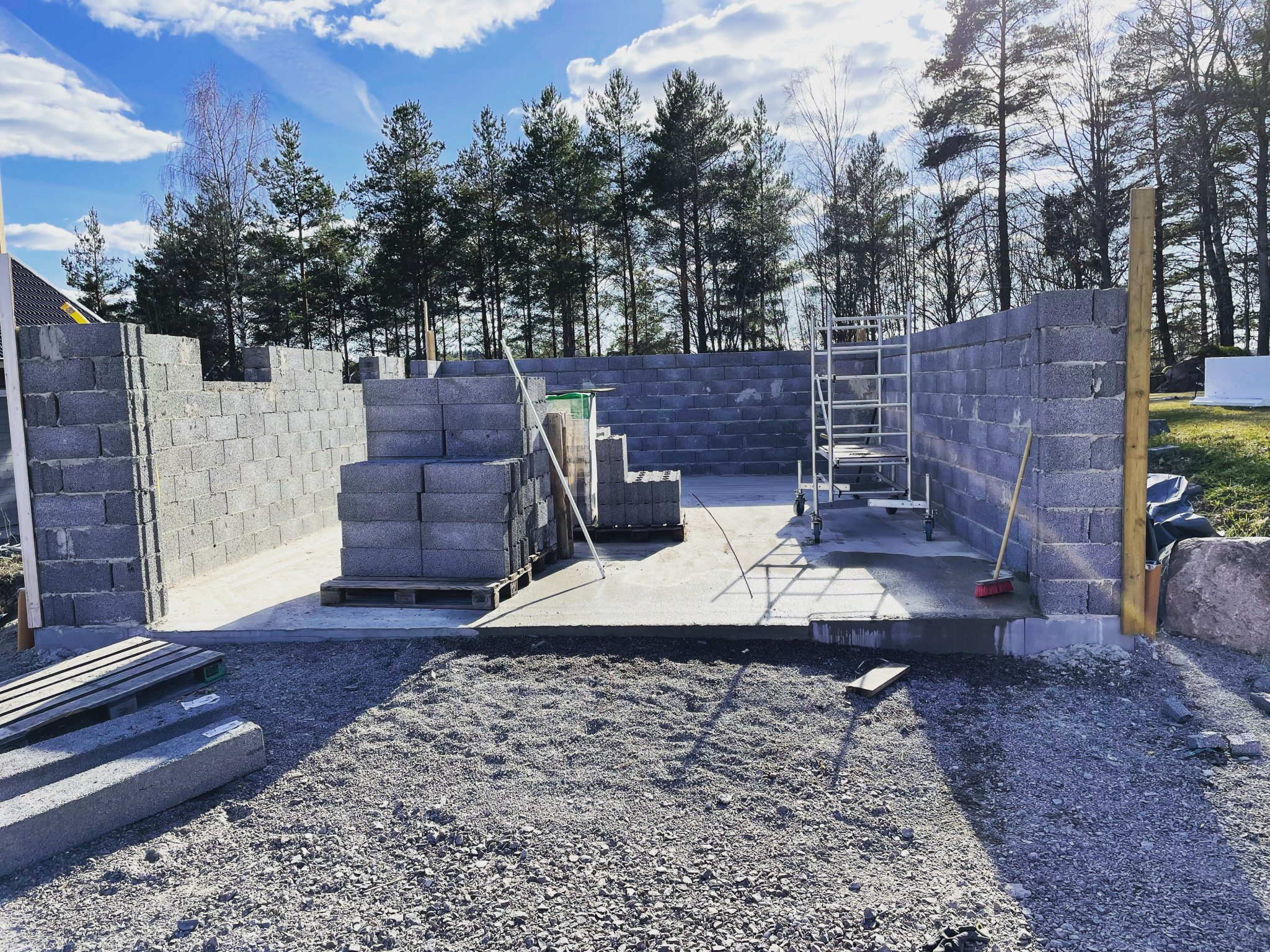 Jag har gjutit plattan och ska börja resa stommen runt påsk om vädret är ok.