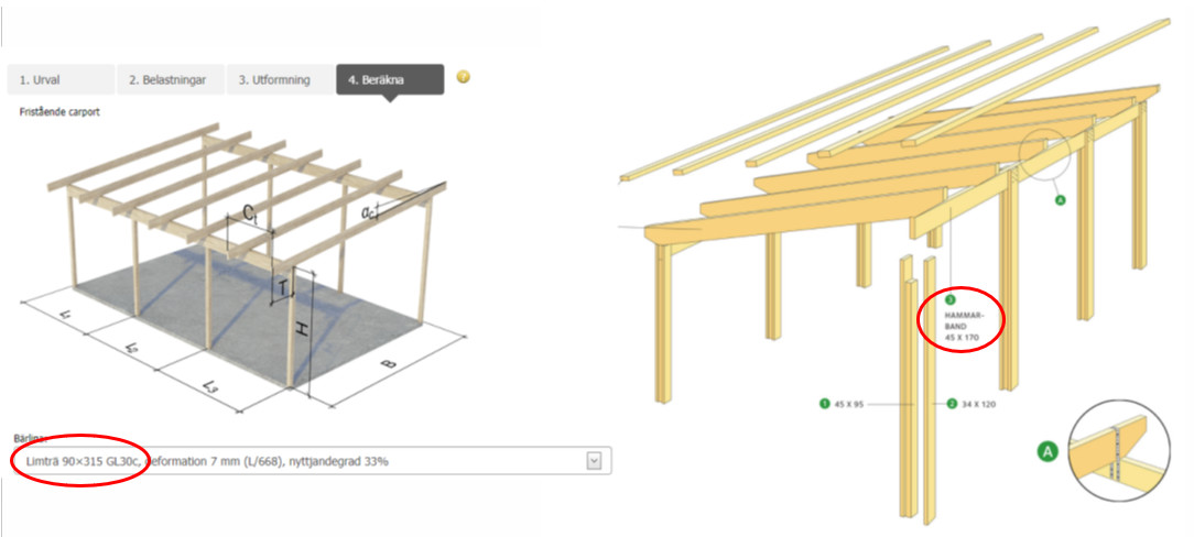 Dubbelcarport med förråd - Dimensionering limträbalk