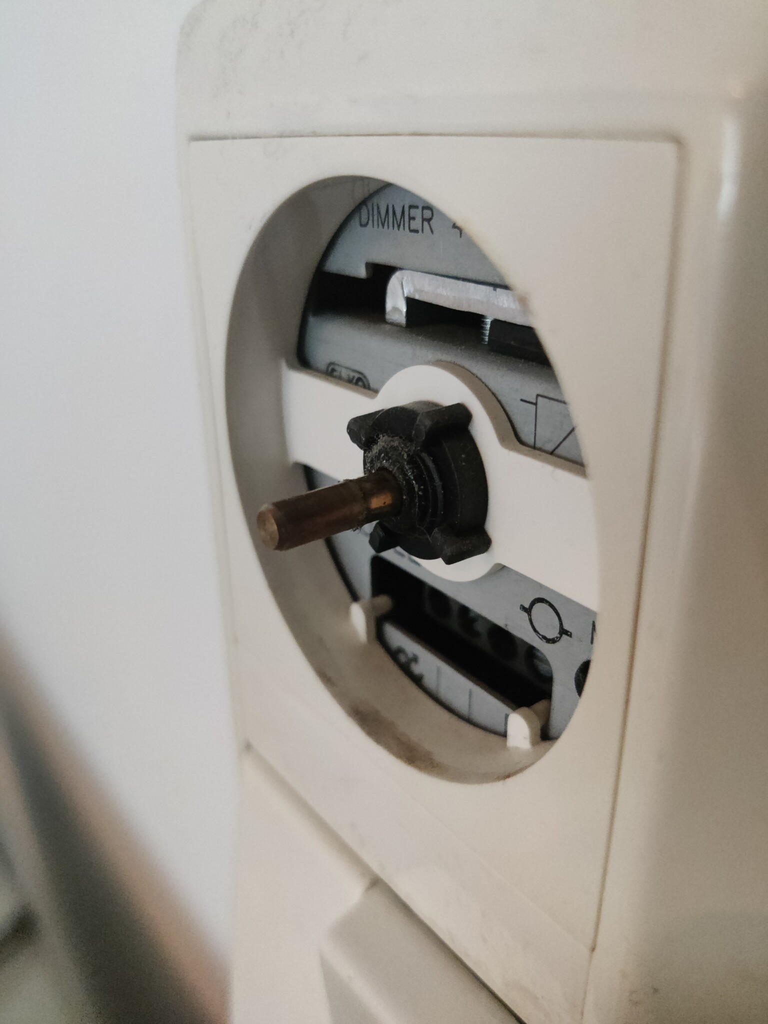 Själva knappen på min dimmer har gått sönder. Är piggen som knappen sitter på spänningsförande utan plastisoleringen? Undrar egentligen bara om jag kan fortsätta använda dimmern ett tag tills någon kan montera dit en ny dimmer åt mig?