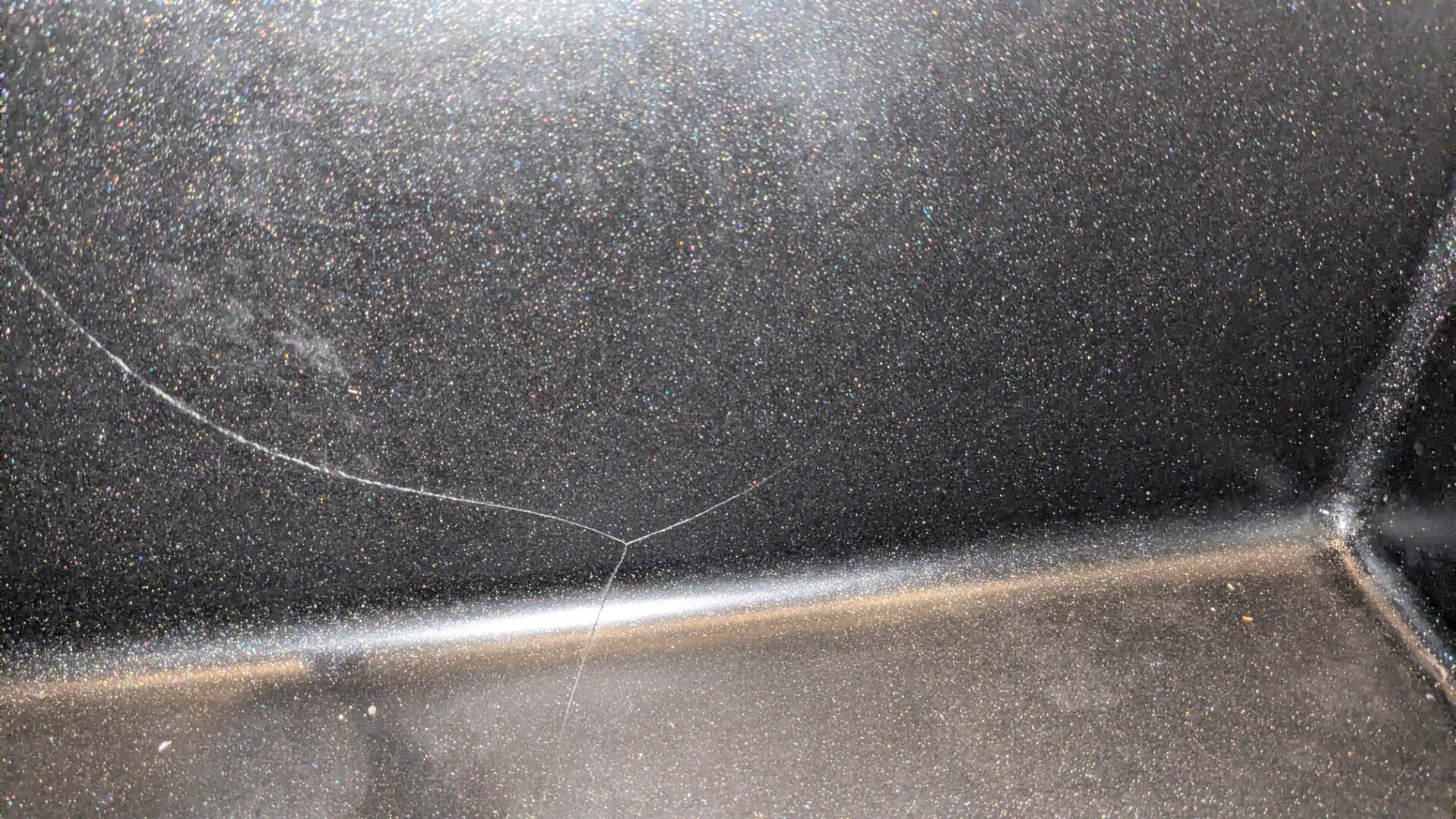 Är du helt säkert att inget har tappats i den då? Svårt att se på bilderna om det finns något centrum eller ställe där flera sprickor går?