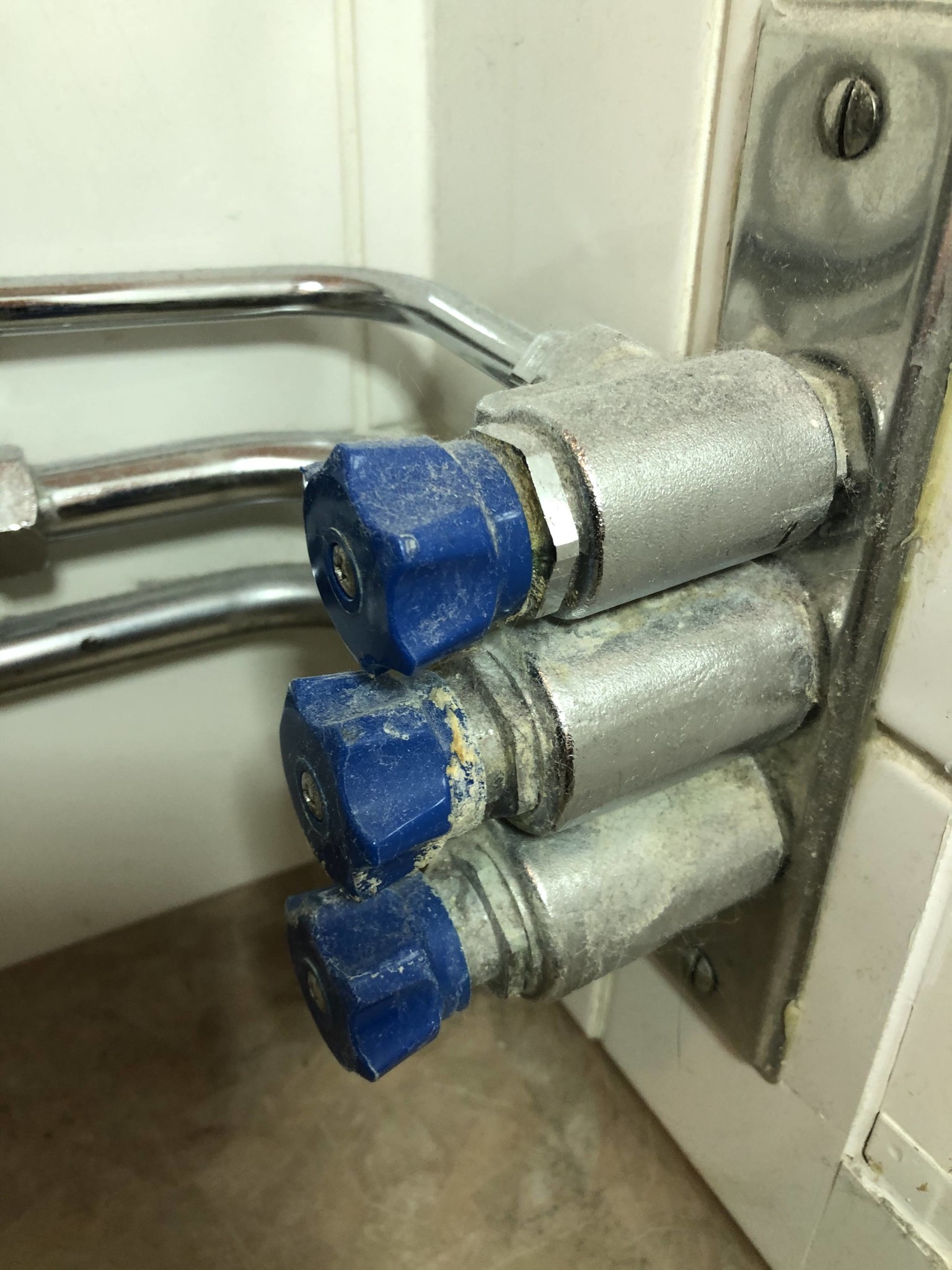 Om den avstängningen bara fungerar räcker det. Sen gissar jag att en av det tre blå kranarna stänger av det du önskar men det är svårt att säga utifrån dina bilder. Det verkar som om den översta av de tre är stängd och de två undre öppna. Det skulle kunna ha med din ej fungerande haddukstork att göra men nu gissar jag mest.F FunkarEj skrev: