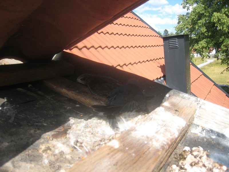 Tornseglarungarna kröp dock tacksamt in under några andra pannor som jag lade ut åt dom en bit längre upp på taket. Förhoppningsvis flyger dom ut vilken dag som helst nu.