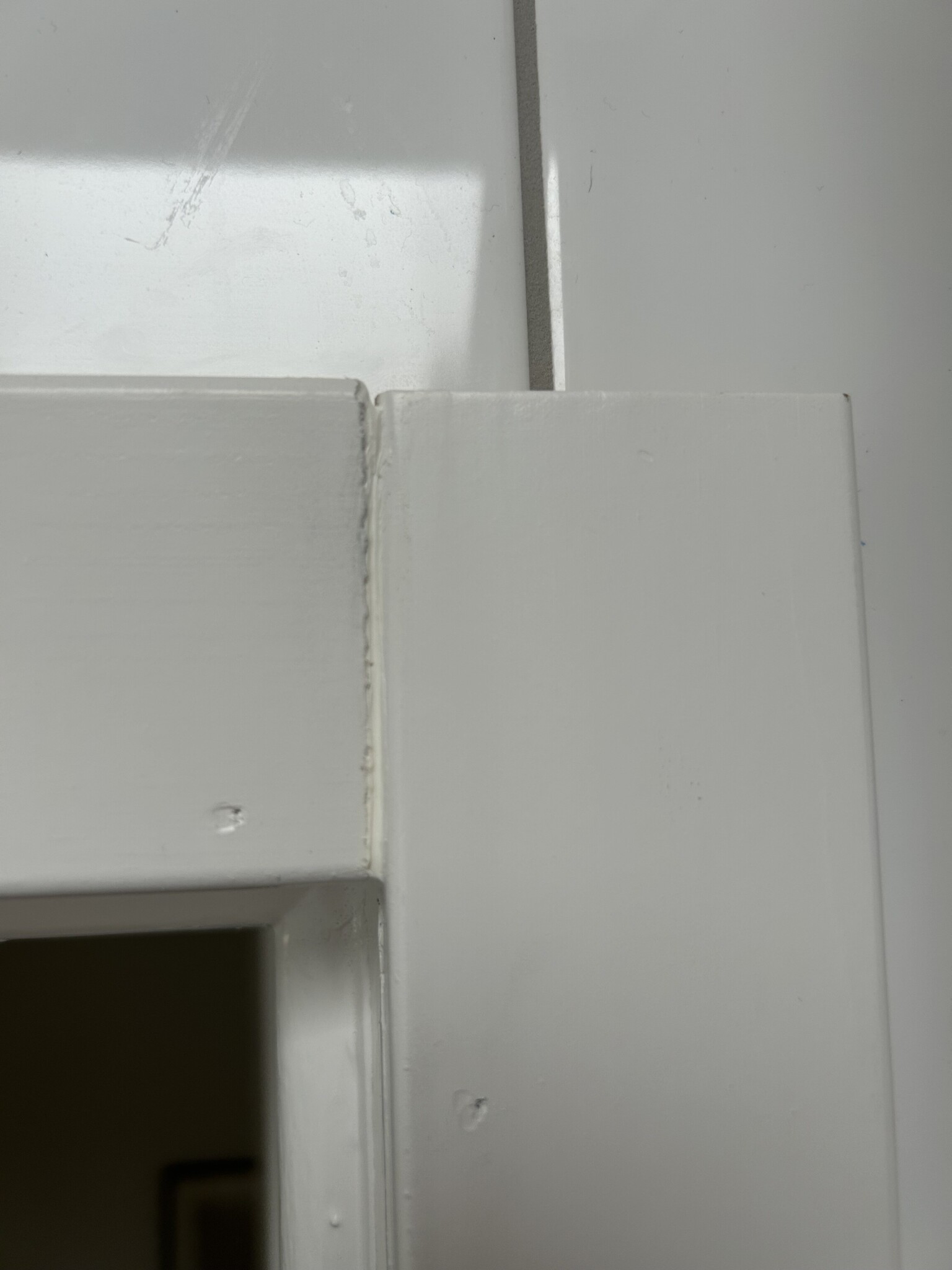 Är jag för petig? Jag tycker det ser ut som att man sågat med en för grov såg så att man ser sågens tandmärken. Dessutom är det blottat trä på kanterna upp mot taket då de inte sitter i vinkel.
