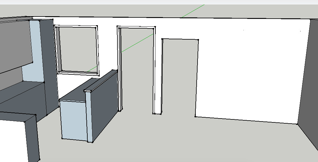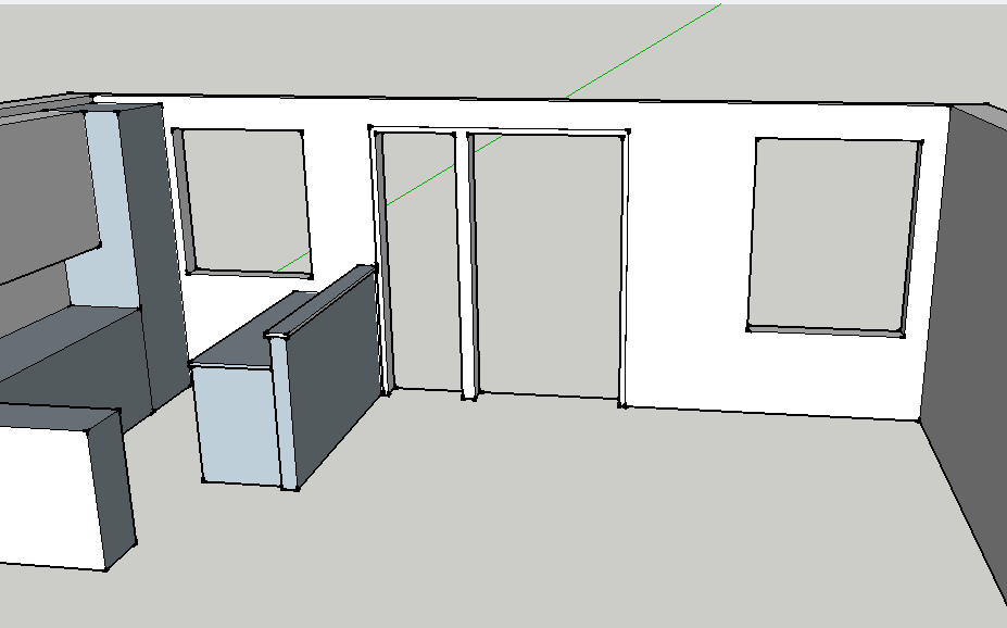 Vi har idag ett golvfönster och pardörrar, och där ska nu en helglasad altandörr, samt dörr in till det nya rummet få plats.