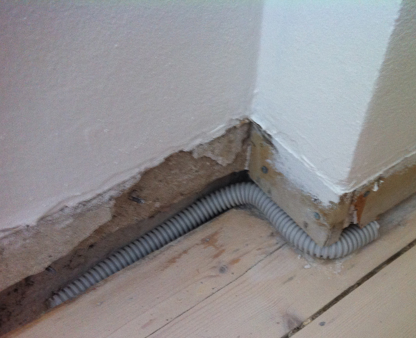 OK men få man gjöra så? Lägga Flex Rör under golvet och eventuellt fräsa lite golvlist om det behövs?
