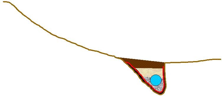 dvs geoduk runt om, slang i botten och sen grus på sidan och ovanpå slangen. Tillslut viker man över resterna av kålen/duken. Vill du sen så kan du lägga ganska grov jord/sand ovanpå och så i. Sen leder du bara bort vattnet i en vanlig dräneringsslang/rör med duk runt om du är orolig för leran