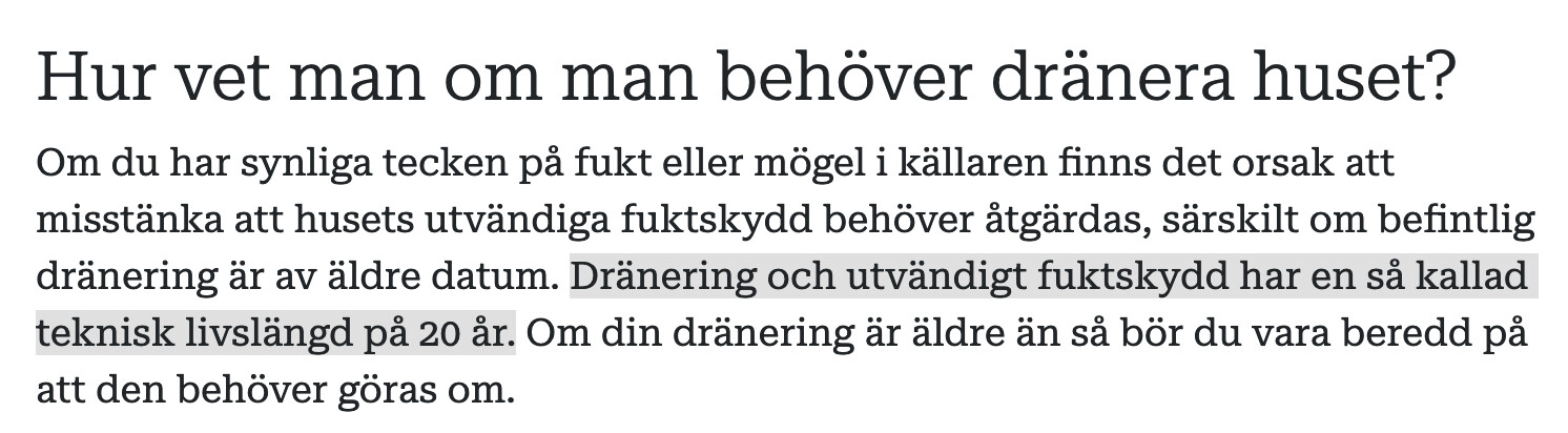 Håller med om att en dränering gjord med modern material är slut efter 20år! Helt jävla orimligt.