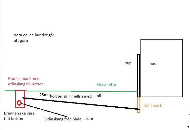 Lite googling om vad man kan göra verkar luta åt en stenkista. Men blir inte riktigt klok på vad man behöver göra, måste inte vattnet ta väg någonstans från stenkistan med dräneringsrör? Det verkar finnas delade meningar om huruvida man bara gör en stenkista eller om man dessutom leder bort vattnet från stenkistan. Vi bor i mittenhuset och det känns kanske inte så aktuellt att gräva rör genom de andras tomter..