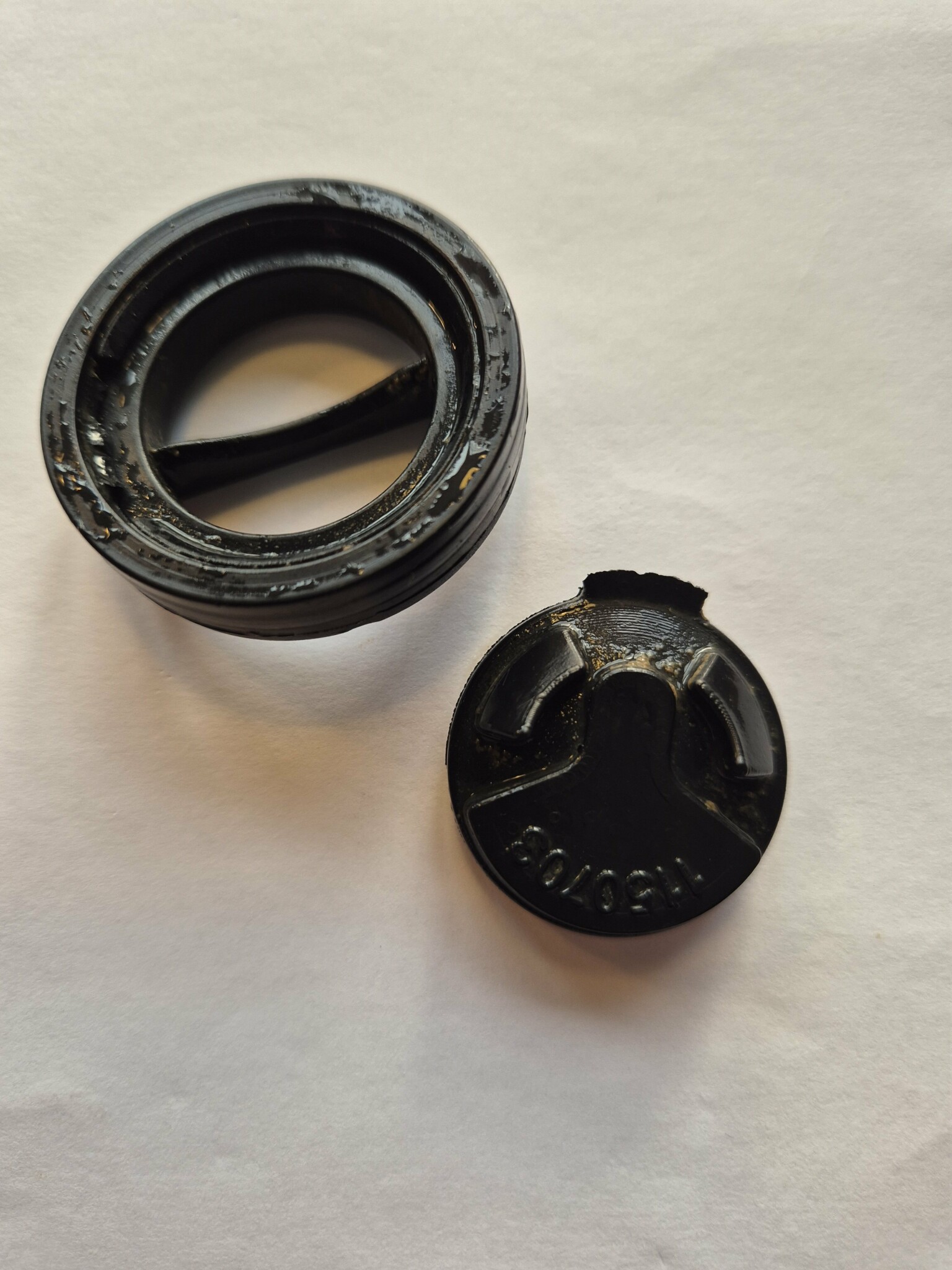 Bild på den trasiga backventilen. Tog bort den och nu pumpas vatten ut, men det rinner tillbaka lite varje gång pumpen stannar.