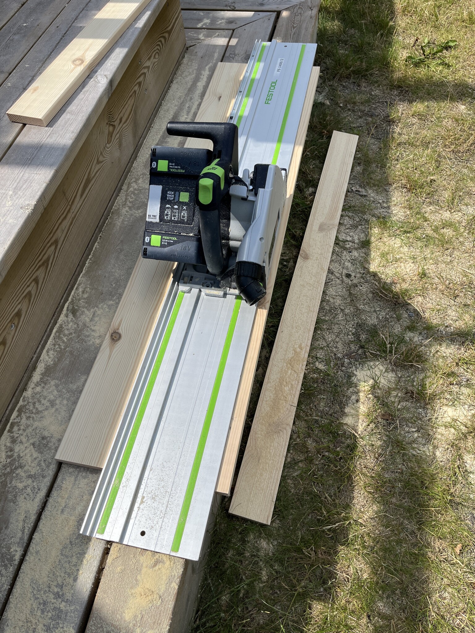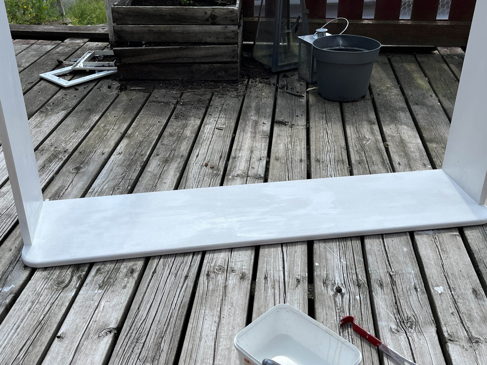 Jag fick solen i ögonen och råkade vända topp-brädan fel. Min vän den sänkta sågen fick hjälpa till och jag gissar att det kommer att behövas någon tub latexfog efteråt när listerna ska på plats.