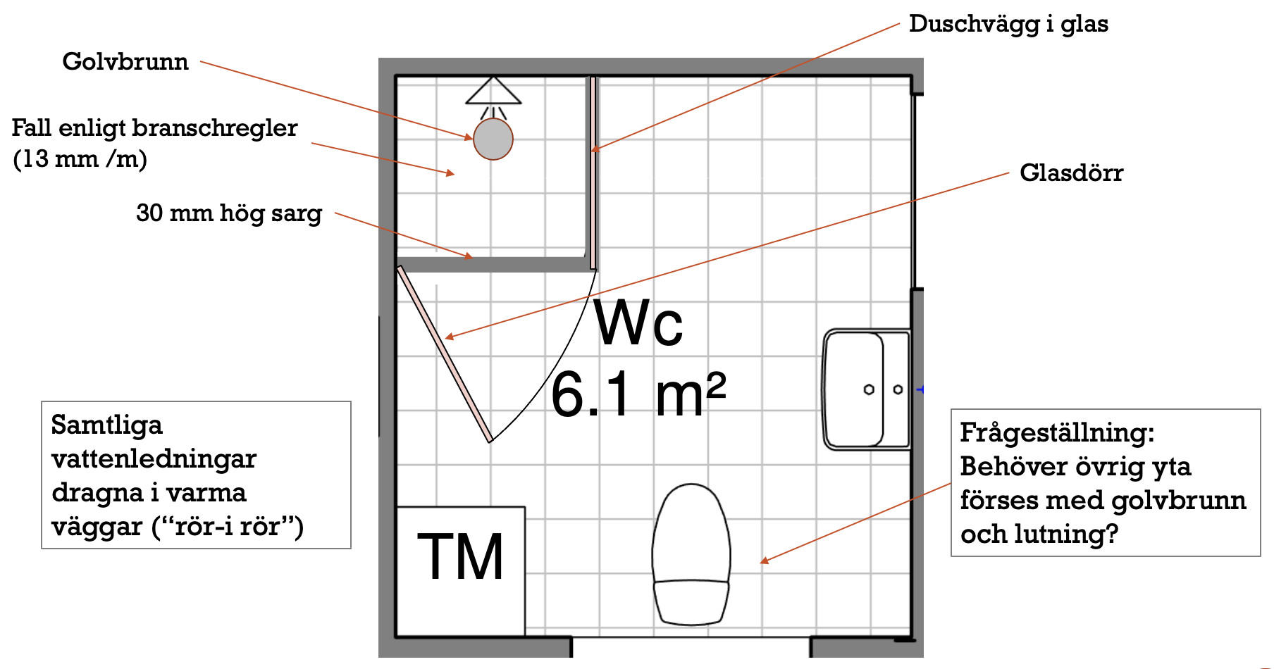 Men det bästa är ju att fråga sitt försäkringsbolag för det är ju trots allt så att man vill att de ska betala ut pengar om det blir en skada och inte sätta sig på tvären för att det är ett badrum med avvikelse.