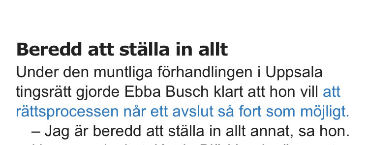 Jag har aldrig läst att hon är beredd att ”avstå huset” tidigare.Maskintok skrev:Ebba har väl haft samma ståndpunkt i detta hela vägen... Det är den andra sidan som kommit med lögner och mediala upplysningar som är av tvivelaktig karaktär..
