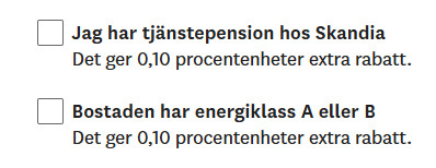 Skandias affärsidé är att inte ge förhandlingsbara räntenivåer. Så har du 1,10%-enheter rabatt så beror det antingen på att du misstolkat eller missat att du eller någon annan på bolånet har en tjänstepension. Det räcker faktiskt att någon på bolånet visar ett intresse att flytta tjänstepensionen, då får man rabatten med en gång under ett år. Max rabattnivå är 0,9%-enheter och därefter följande, summa 1,10%.T thced skrev:Har endast bolån, och 1.10% i rabatt så krävs ingen tjänstepension. 54% belåning.