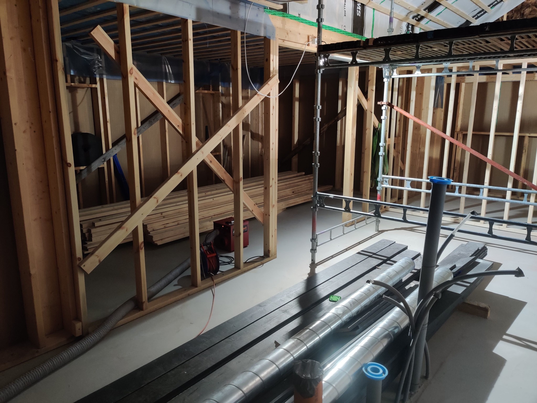 Glesen är kompletterad med några meter som saknades, har satt plast på ytterväggen på loftet då virket i denna var tillräckligt torrt och har isolerats, har dragit upp imkanalen på vinden, och lite annat smått och gott.