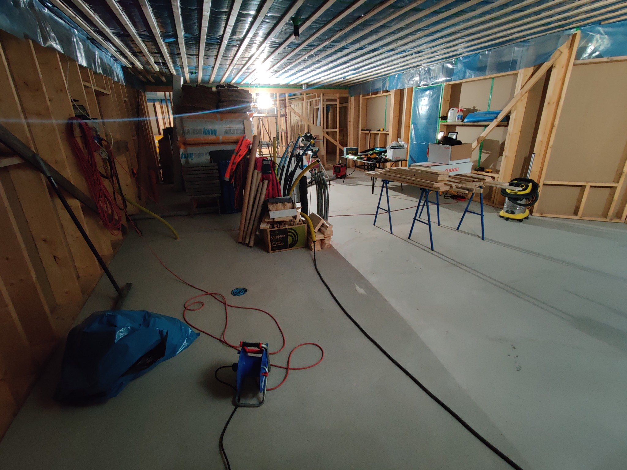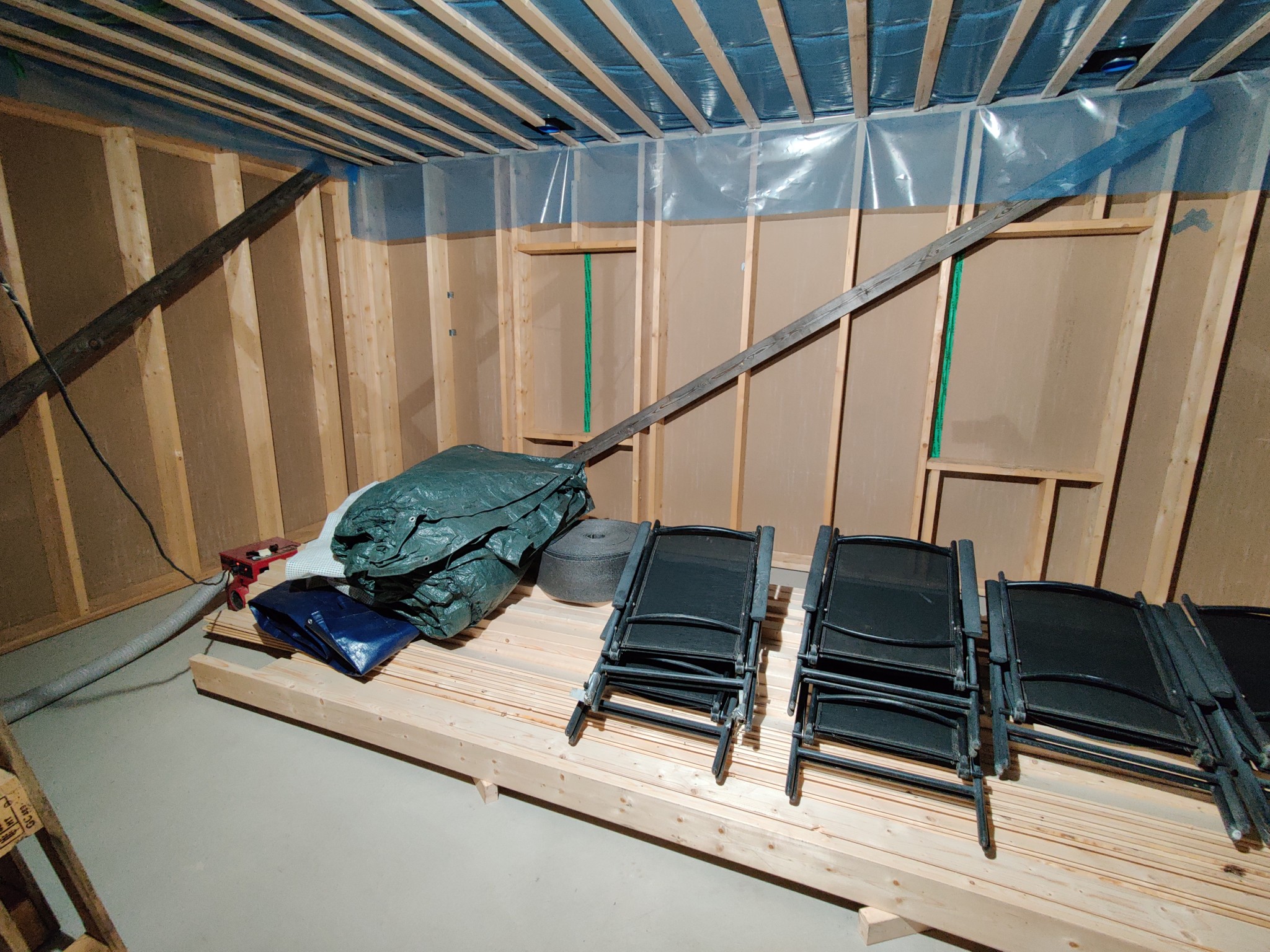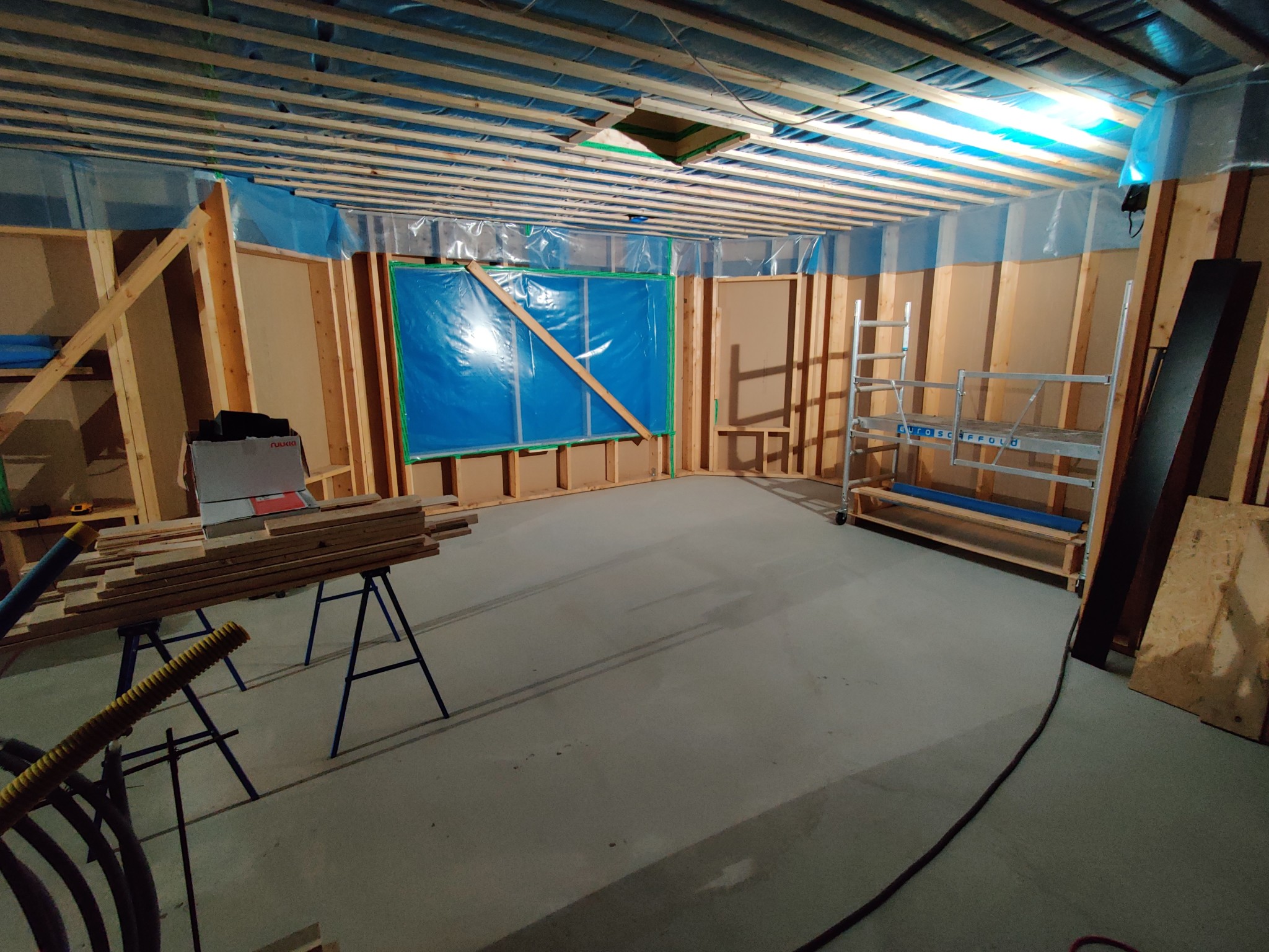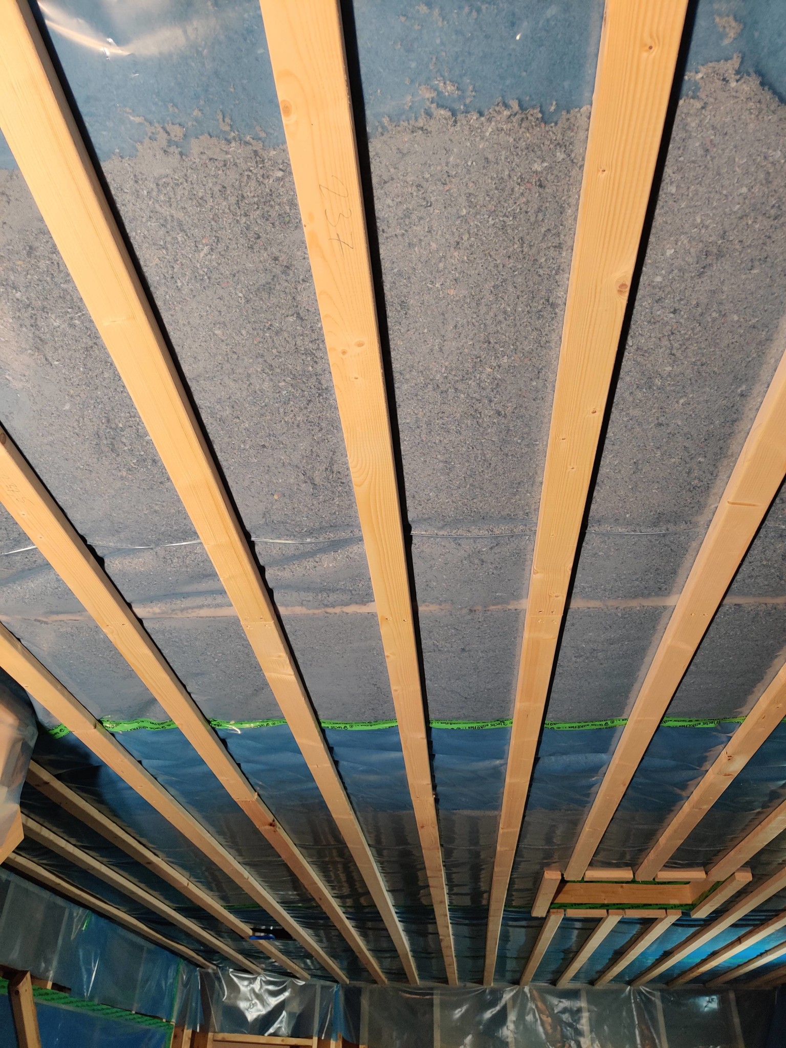 Vårt stod väder tätt i flera månader menad jag höllt på med bjälklag, golv ventilation och panel på utsidan.