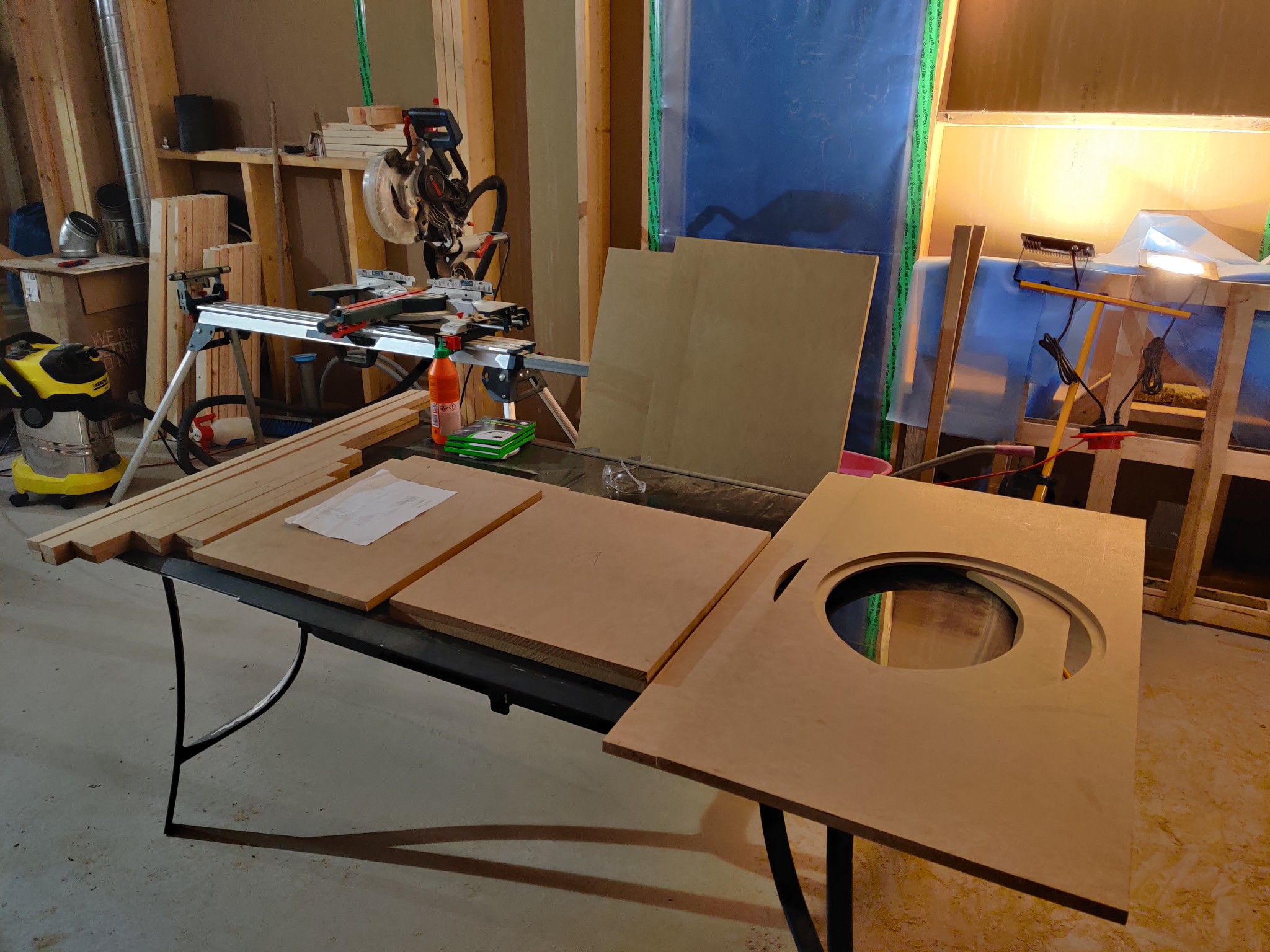I väntan på att stommen ska torka, och när jag inte orkar mig ut i kylan och sätta spikläkt, så har jag påbörjat ett litet sidoprojekt: att bygga två nya baslådor till hemmabion! Hemmabion som inte finns än, men till rummet som nu är vardagsrum då...