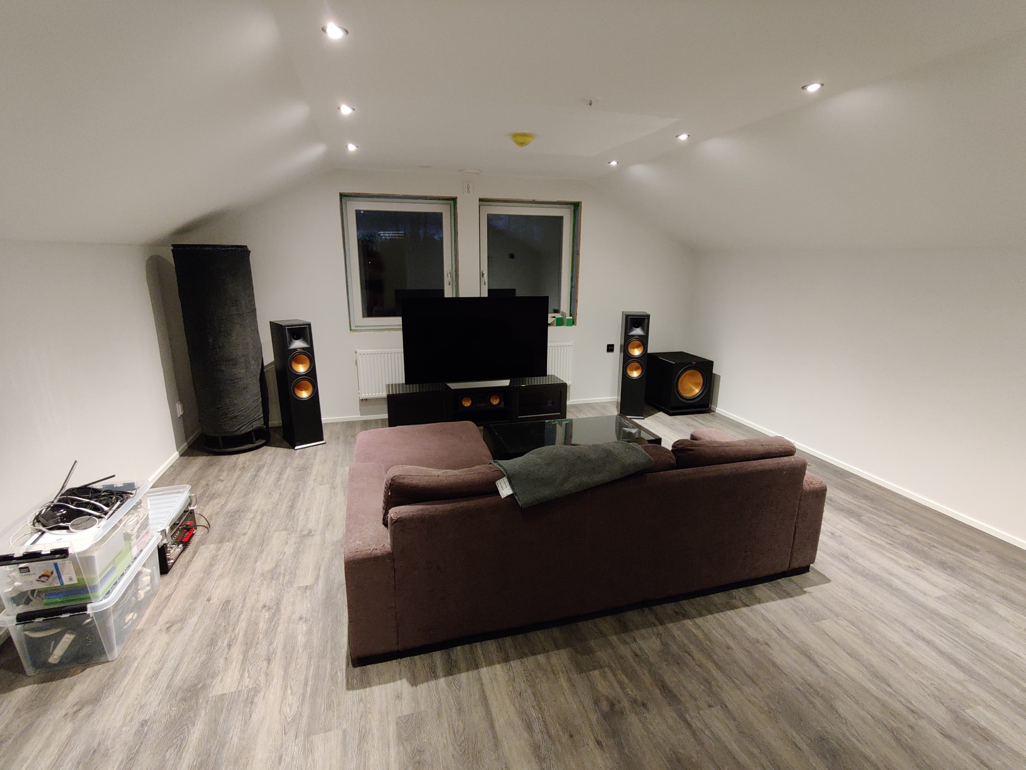 Jag la 2 veckor på lådorna i bjälklaget till "back" och "atmos" högtalarna. Det va ngt år sen och nu upptäckte jag att min gamla Optoma HD65 visar vertikala streck över hela bilden.... Prioriteringen att ev köpa ny proj är svår så nu räknar jag noggrant för att kunna njuta av bio så i coronatider. Frun har rätt i att barnen aldrig bett om en bio hemma men de har heller aldrig upplevt ngn...