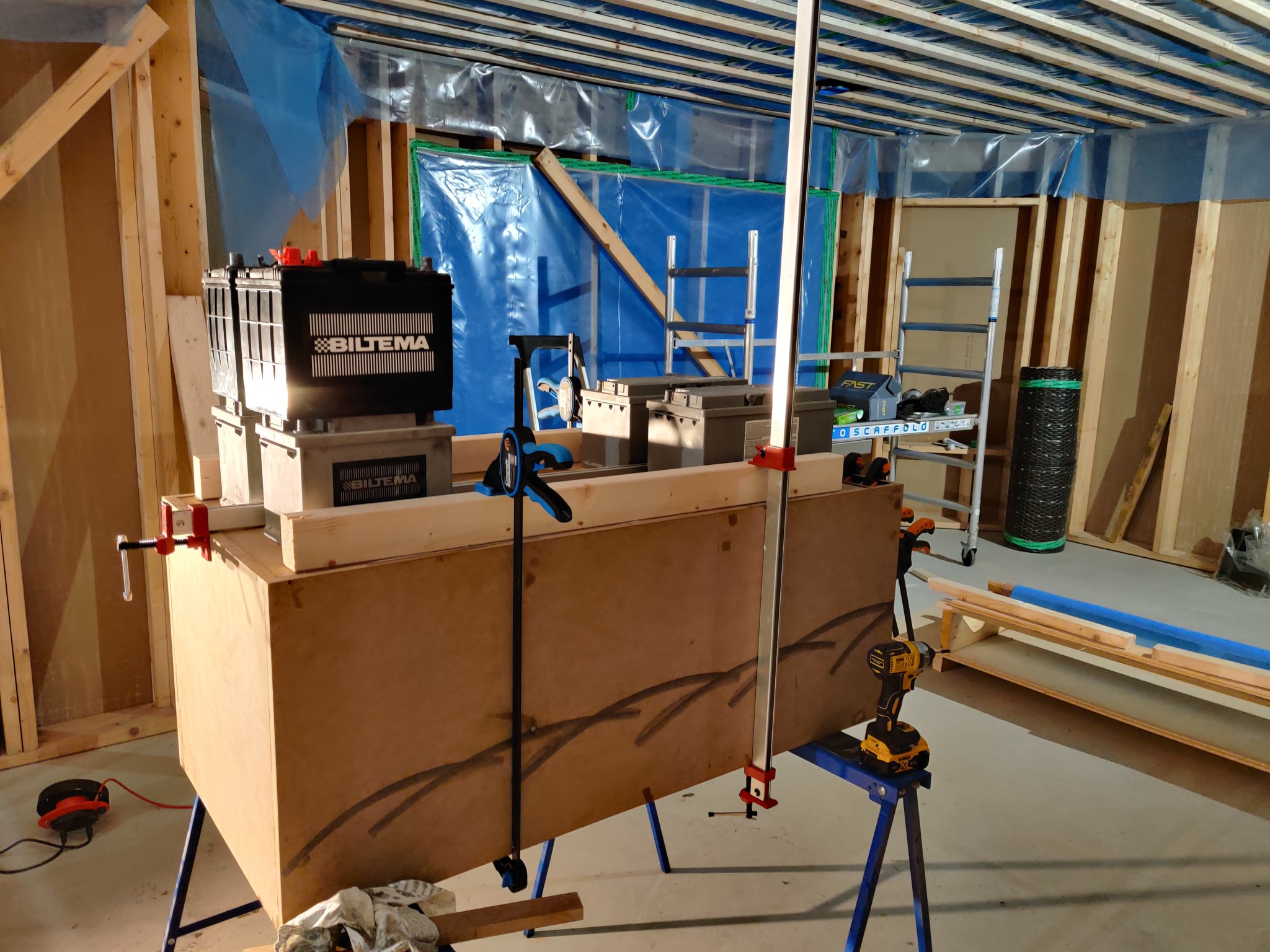 Tur att man köpte en båt med mycket batterier i höstas, så man har något att pressa med.