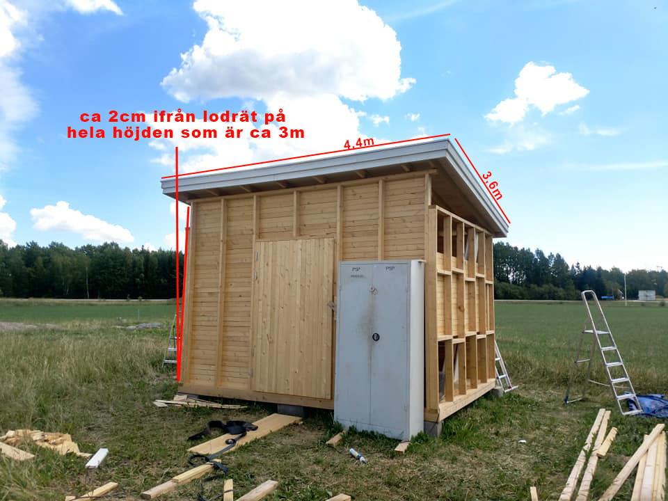 Jag vet att det är dumt att inte ankra bygget i marken innan det var klart. Men efter att panelen kom upp på insidan kändes det extremt stabilt och jag trodde inte dom behövdes längre vilket tydligen var fel...