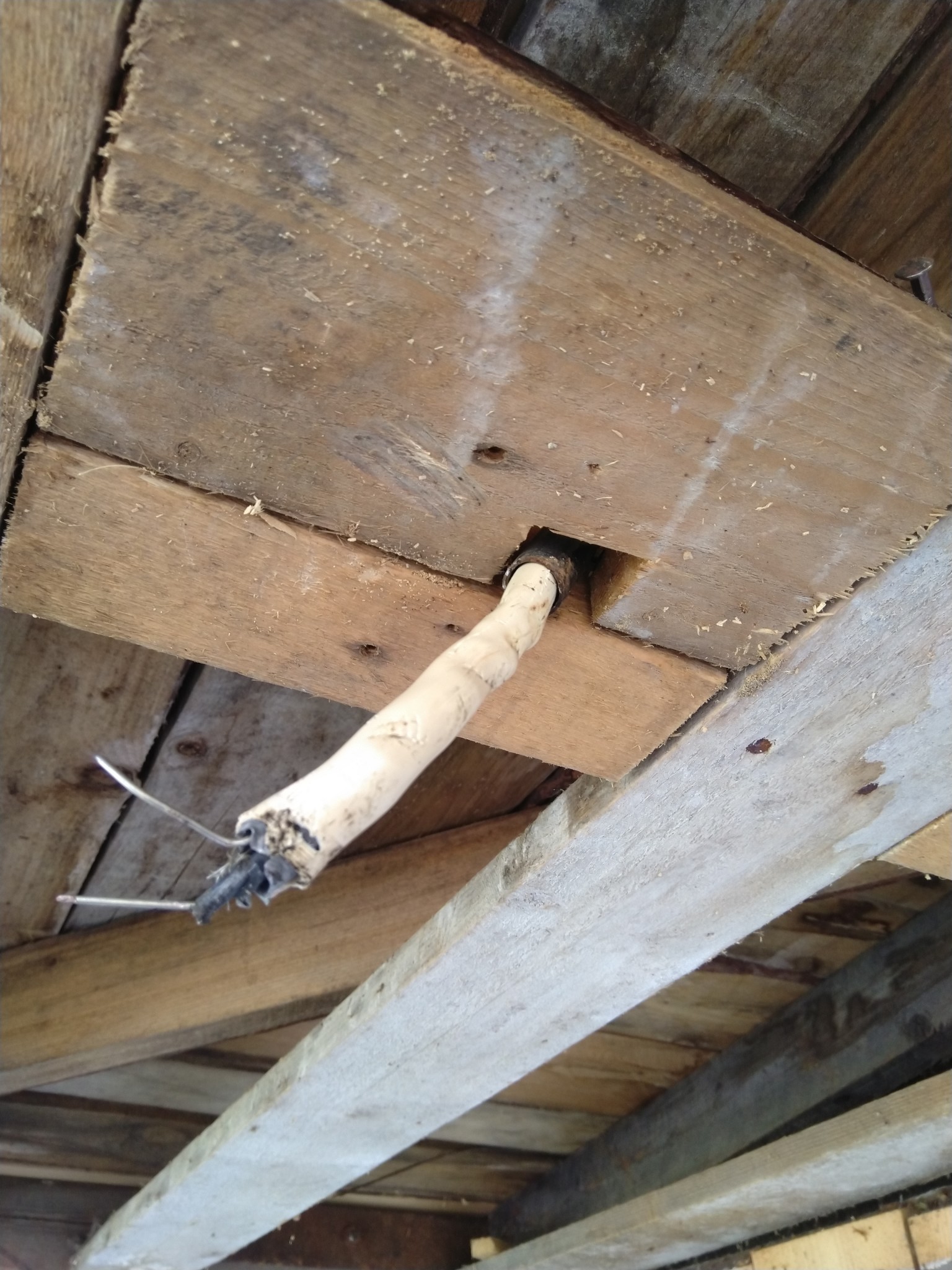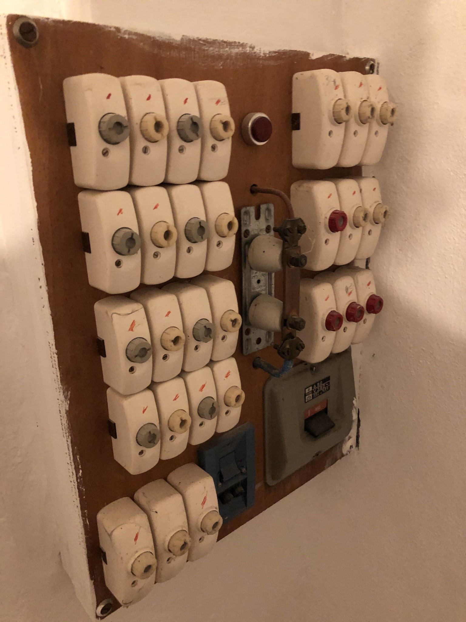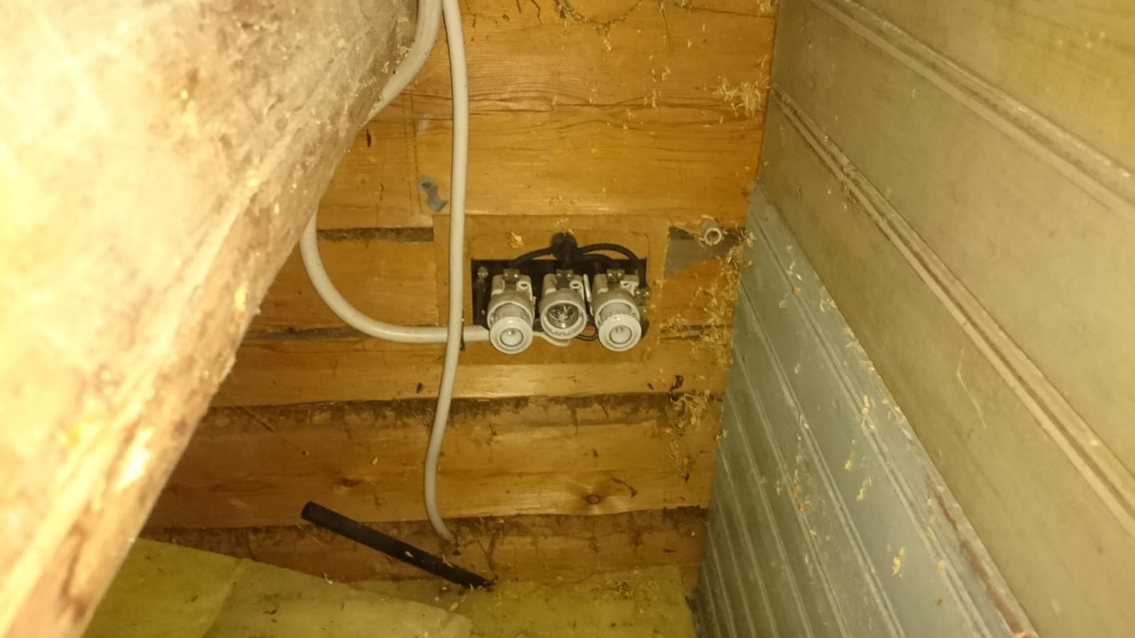 Tappade en fas i kåken förra helgen. Efter en del felsökning hittade jag den här uppe på vinden bland sågspån och damm. Satt visst en liten central där med 25A proppar sen det gick in luftledningar.