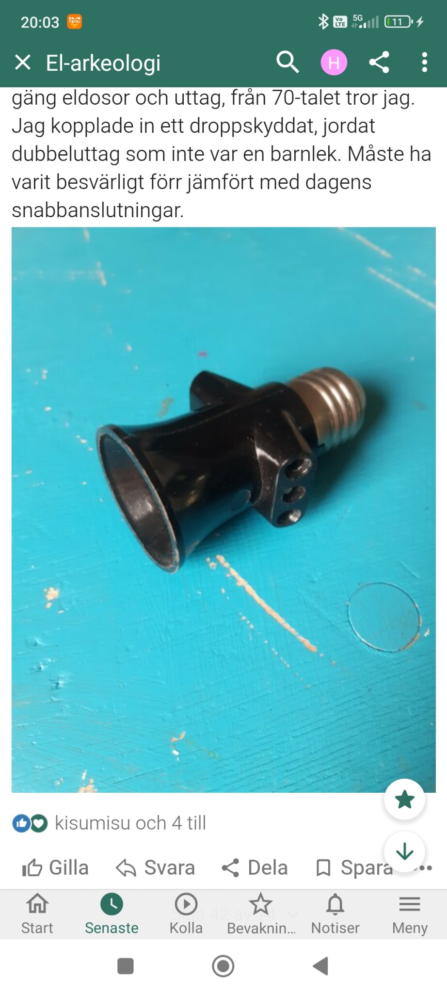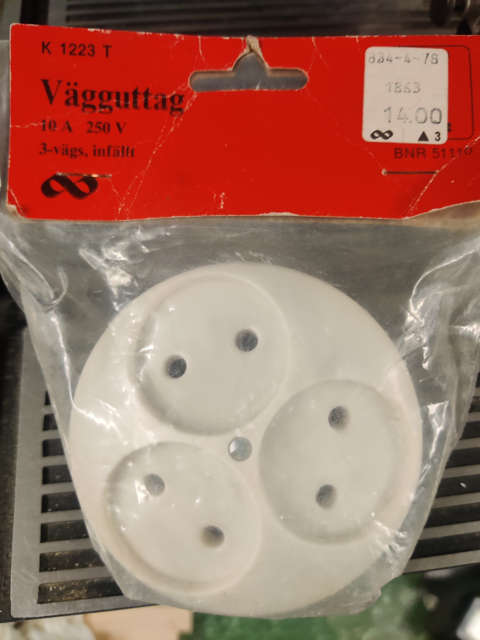 Jag var på loppisrunda igår och shoppade lite elmaterial. Kunde inte låta bli att köpa den här obegagnade skönheten i bakelit. (Har inte tänkt använda den). Det var hos en tidigare säljare i elmateriel som hade mycket "new old stock", NOS, så att säga. Det blev också ett gäng eldosor och uttag, från 70-talet tror jag.