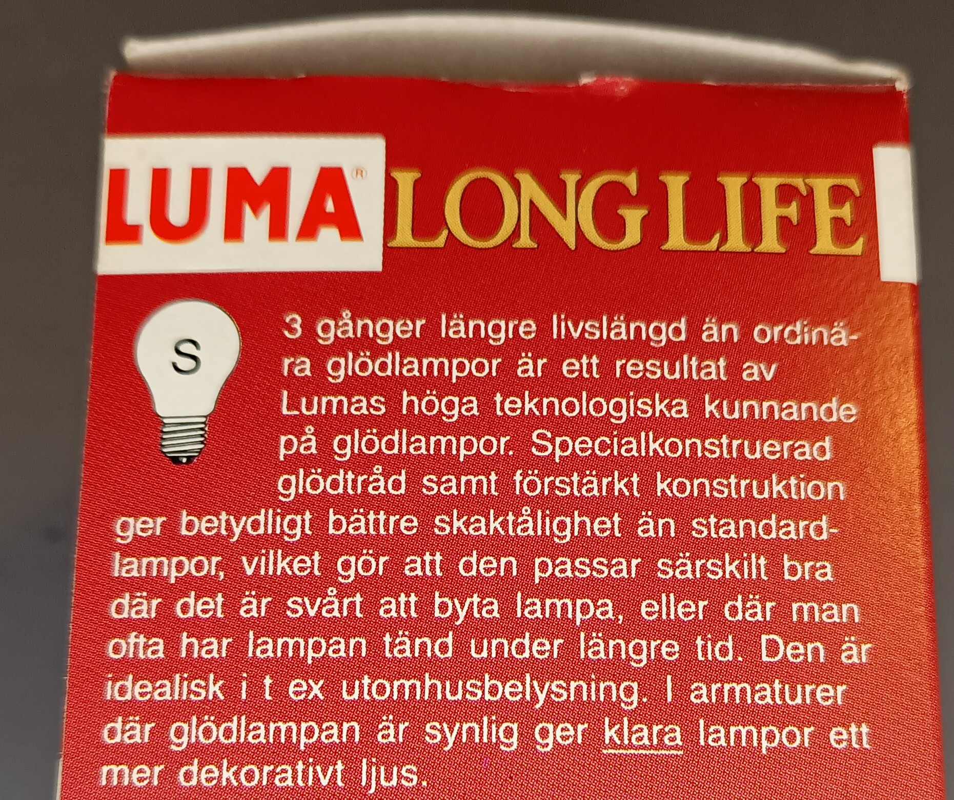 Glödlampor från tiden då kooperativa förbundet ägde egen lampfabrik. Den ena lampan i longlife utförande som gav bättre livslängd och skaktålighet men till priset av något lägre ljusutbyte.