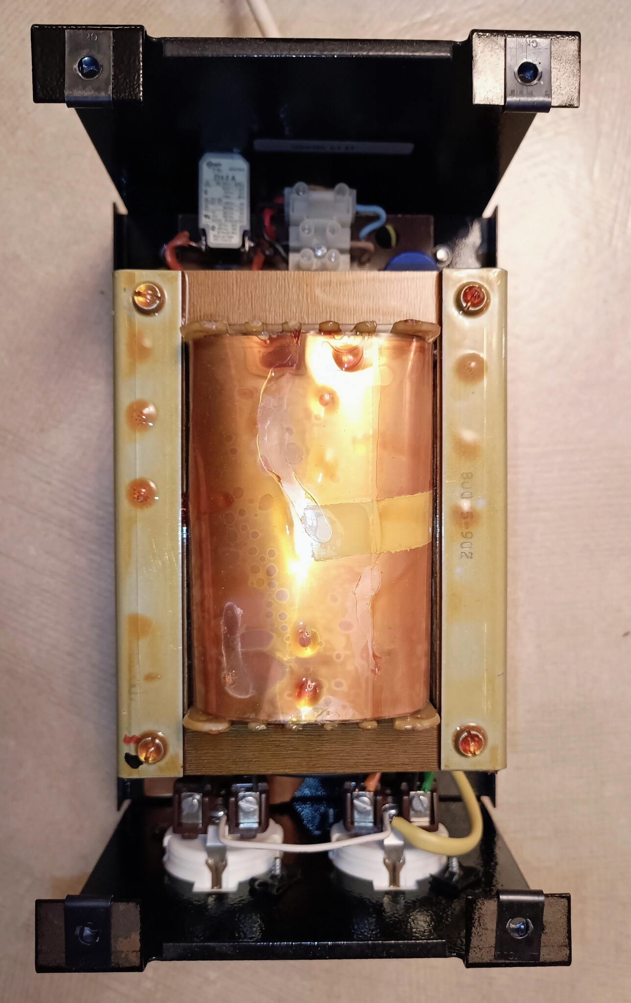 Transformator på 500 w använd av audiofiler för att få renare ljud. Provade att koppla in den men det enda jag hörde var 50 Hz brummande från den gigantiska transformatorn. Marknadsfördes med att den tvättar strömmen genom att undertrycka transienter och ge galvanisk separation och därmed en bättre ljudupplevelse. Tro det den som vill😆. Dessutom har den en rejäl elförbrukning även på tomgång.