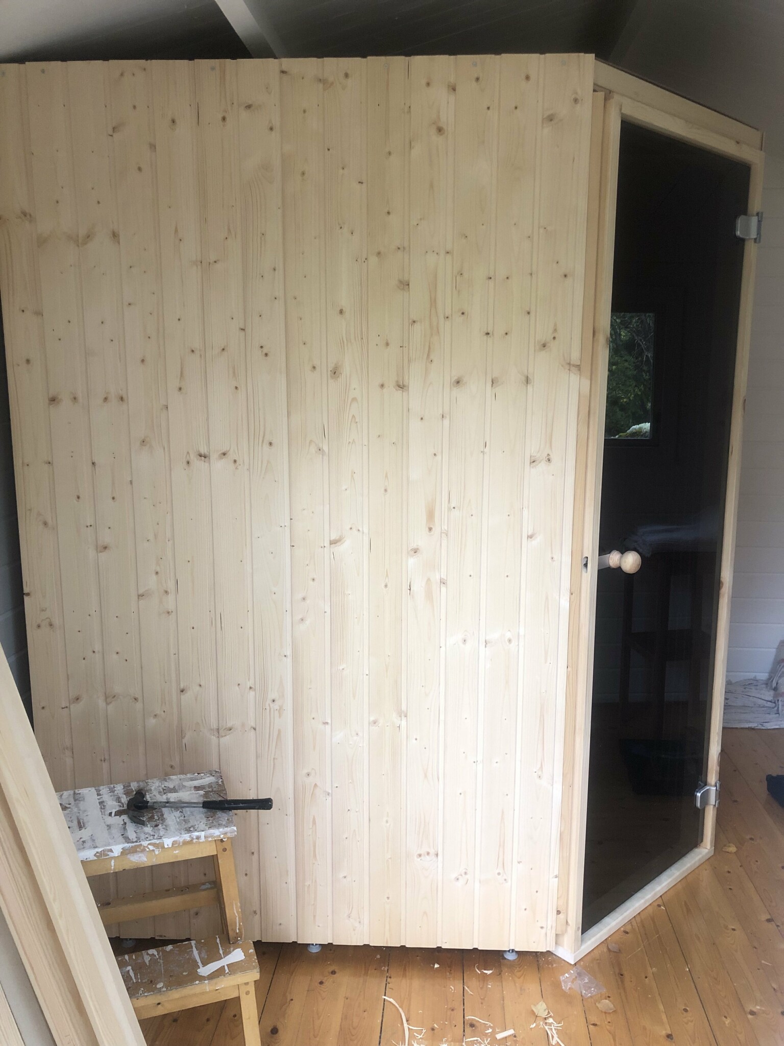 Listerna runt och i bastun behöver jag hjälp och över dörren,samt eldragningen.