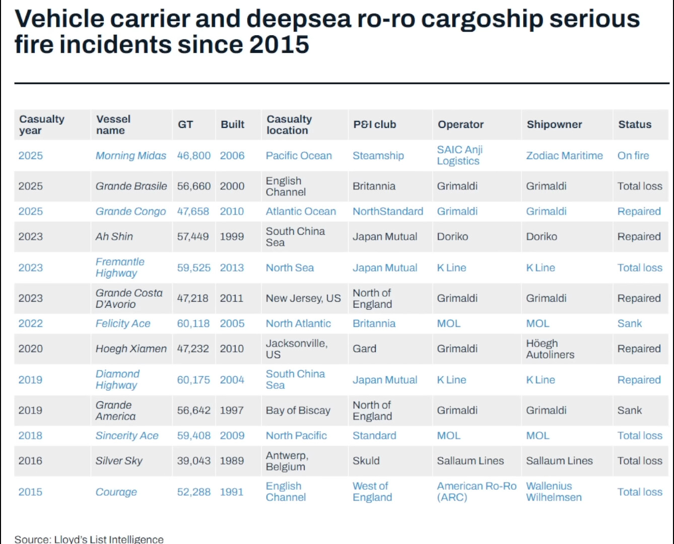 Åter igen, för att det varit många bränder på just denna typ av fartyg