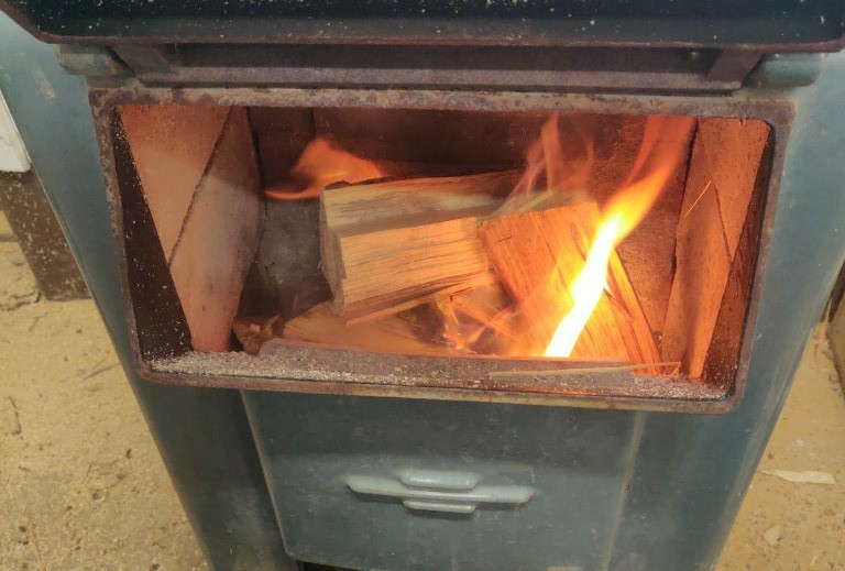 Husqvarna 155. Jag fyller upp med ved sen tänder jag på toppen (lite på sidan av ett vedträ). Låter det ta sig med med den undre luckan öppen.