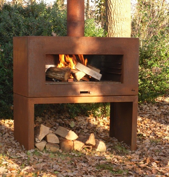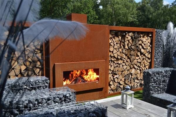 Jag har lite planer på att svetsa en eldstad av cortenplåt till uteplatsen i trädgården. Jag har försökt leta lite efter hur en sådan ska utformas men det är inte så lätt. Tanken är att det ska se ut som en öppen spis och på båda sidor om ska vi ha vedförvaring.