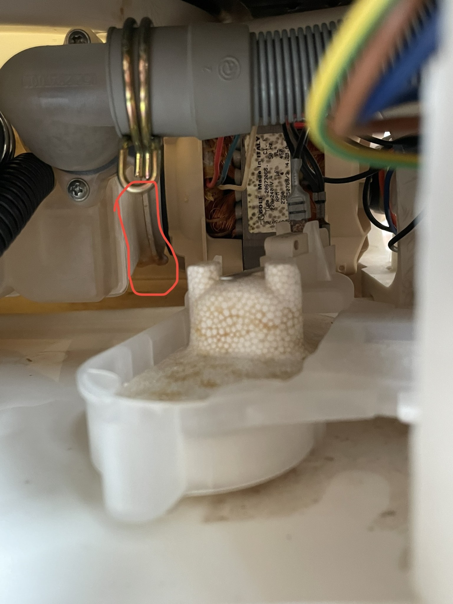 Vid noggrannare koll så rinner nog vattnet ”uppifrån” längs med skarven. Din beskrivning gällande att plocka ut pumppaketet resp. dela motor och pump låter inte som något jag ska ge mig på som aldrig har skruvat i en diskmaskin tidigare….