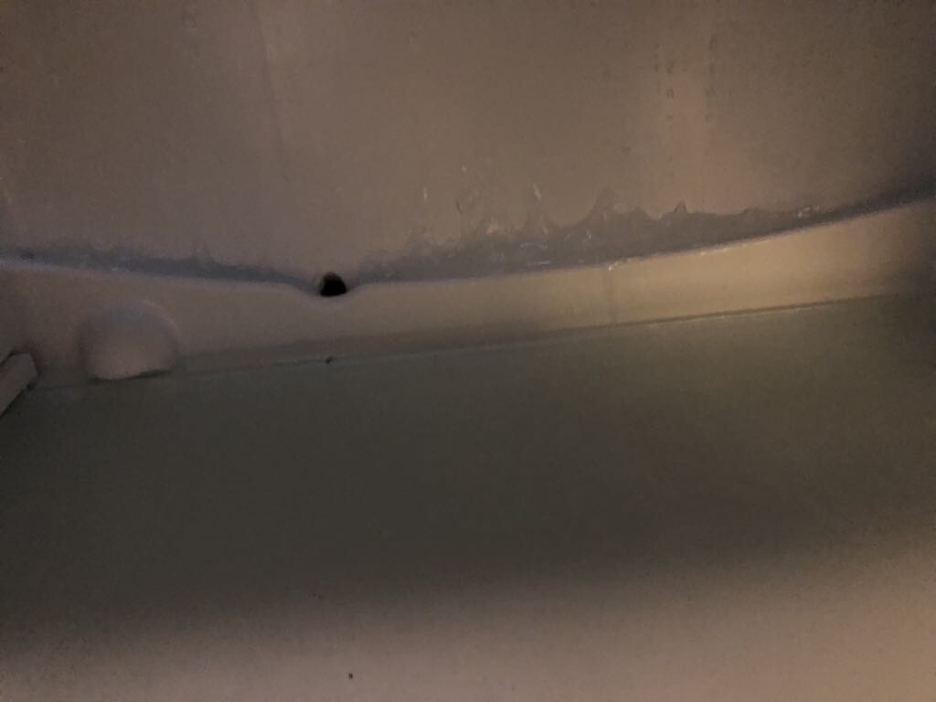 försäkringsbolaget? Ok... Vad gäller det där lilla avrinningshålet; det går en tunn slang ner intill den "varma" kompressorn (samlas i en typ tvålkopp) där det är meningen att vätskan ska dunsta - rätt ohygieniskt faktiskt. Kan lätt bilda mögel som kryper upp och in i kylen. I bland täpps hålet igen (framför allt på äldre kylar som inte har antibakteriell funktion) och det kan vara svårt att få loss (man kommer inte åt), tog flera sugrör och satte ihop dem och sög...Skulle jag inte ha gjort! Blir sur och vända på hela kylen och slet bort hela slangen och trycksatt den med duschen...Ut kom en mörk massa, som en lång mask... Ett annat effektivt sätt är att först försöka peta in bikarbonat och sedan "flusha" med ättiksprit, det fräser till. Klart. Mycket svårt att få bort mögel (och lukt) när kolonin väl etablerat sig.