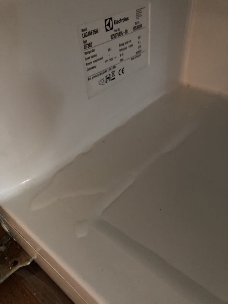 Upptäckte häromdagen att det droppat vatten från kylskåpet ner på golvet.