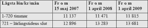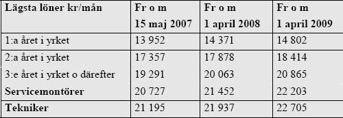 Från man blir anställd tills man jobbat 720h så har men en lönenivå, tiden är även en provanställning. Sedan från 720h-1600h så är det en annan lönenivå. Tiden från anställningen till 1600h kallas lärlingstid. Efter dom 1600h så blir man Förstaårsmontör i ett år, med en lönenivå, sedan Andraårsmontör i ett år, med en annan lönenivå. Därefter så är man "fullbetald"