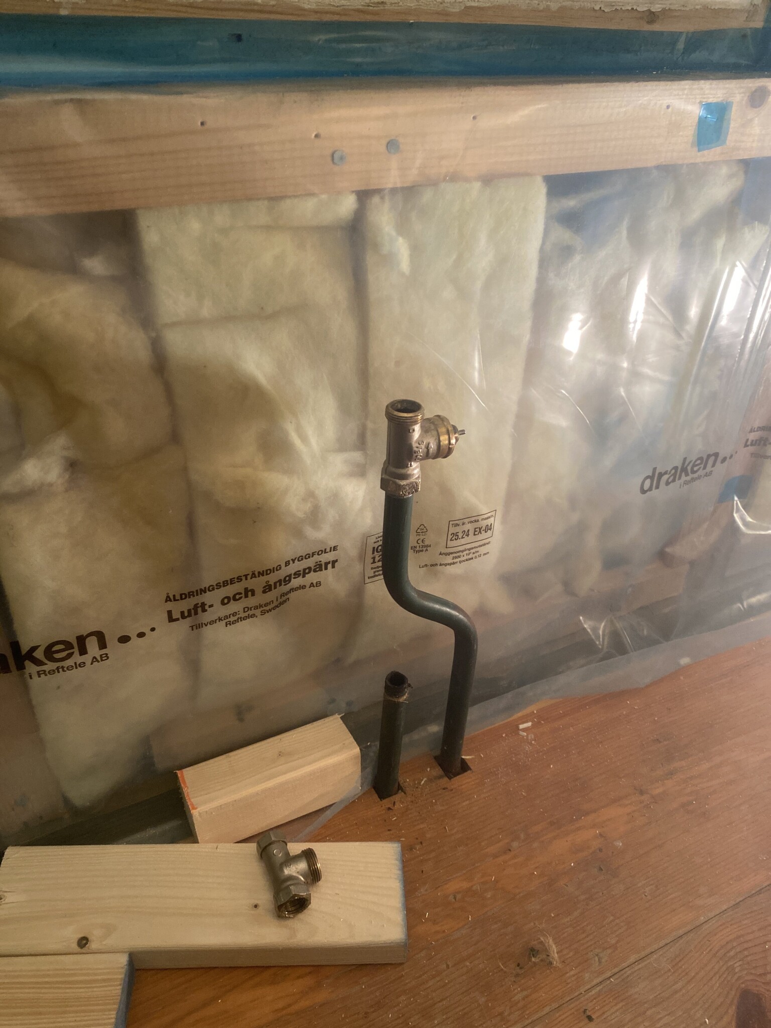 Jag håller på med ett installationsskikt och ska tilläggsisolera. Men då har jag ett problem då rören till elementet sitter för nära väggen. Det är även guten betonggrund.