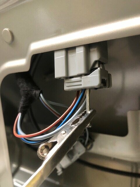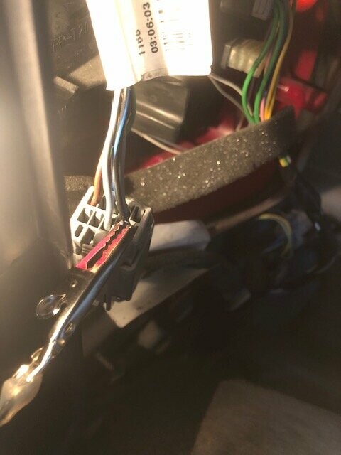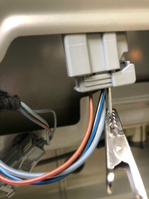 Nu prövade jag alla möjliga sätt och har hittat ett som funkar. Om jag kopplar blåsvart kabel direkt till batteriets minuspol antingen vid kopplingen i bakluckan eller på vänstersidan så försvinner felmeddelandet i displayen, och nu funkar både knapp och fjärrkontroll för att öppna bakluckan. Baksidan är att bilen nu tror att luckan alltid är stängd så även om jag öppnar luckan står inget meddelande om det, och belysningen i kofferten slås inte heller på.