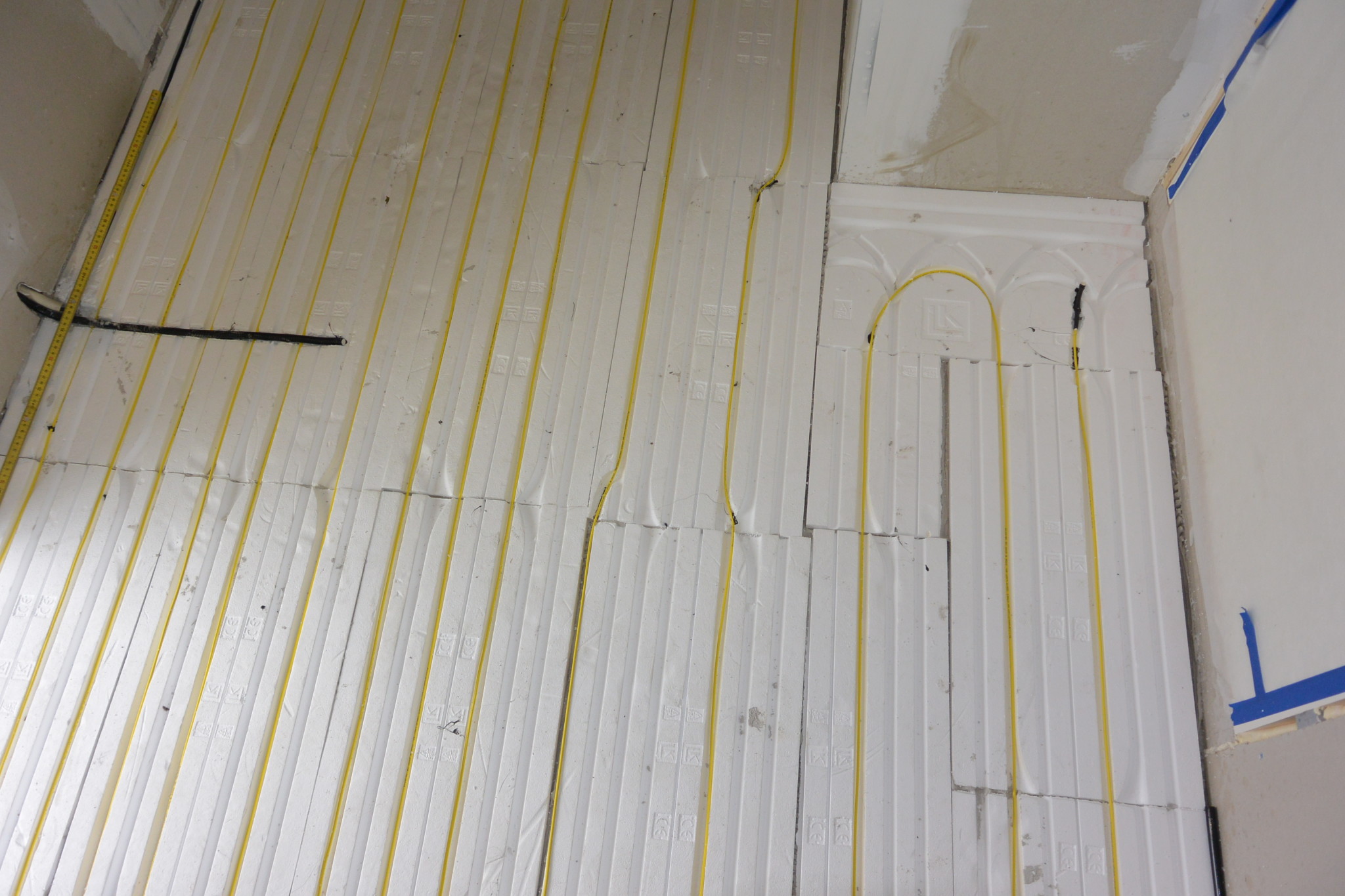 Därför tycker jag golvvärme är en bra lösning, visst det bygger lite på höjden vilket ändå inte gör någonting, det torkar upp blött golv vilket är bra i en groventré och jag kan bara plugga radiatorn och slippa bila upp plattan.
