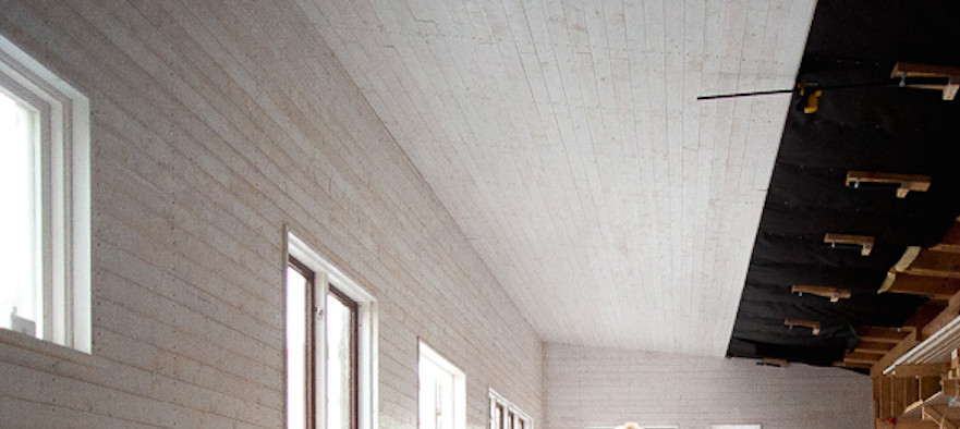 Det är råspont som panel på tak och vägg. Också hempulat så det är inte helt rakt