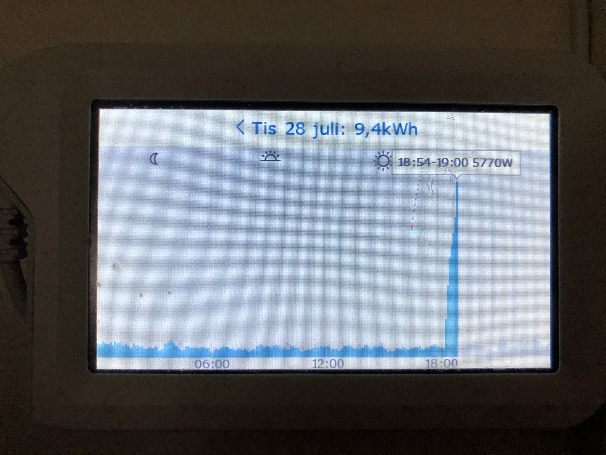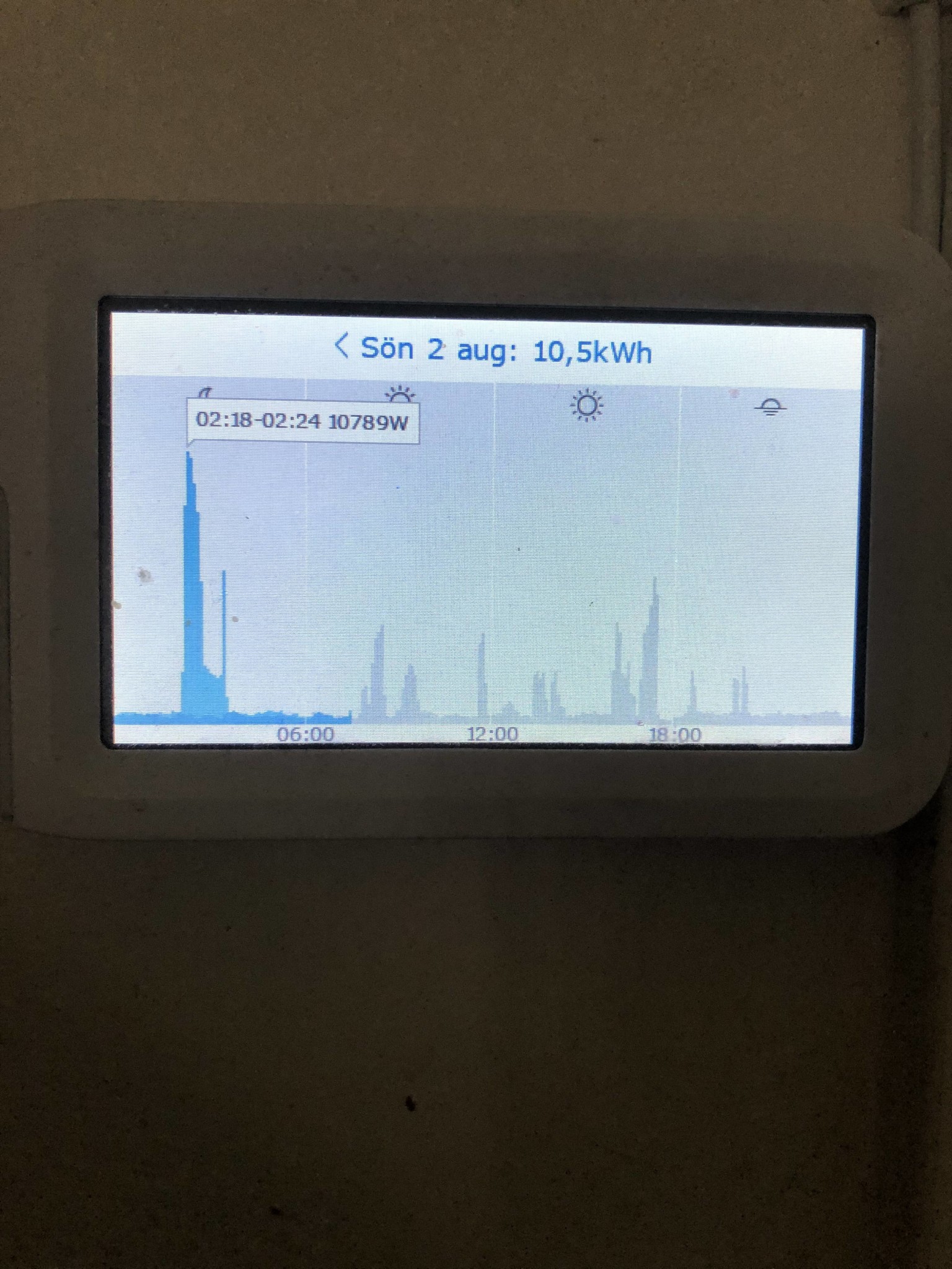 Jag har tyckt att varje gång kompressorn i bergvärmepumpen går så visar Sparsnäs orimligt hög effekt (har haft den ett tag så jag vet att ”baslasten” är mellan 300-500W för huset.) Bifogar två extremfall som jag har dokumenterat.