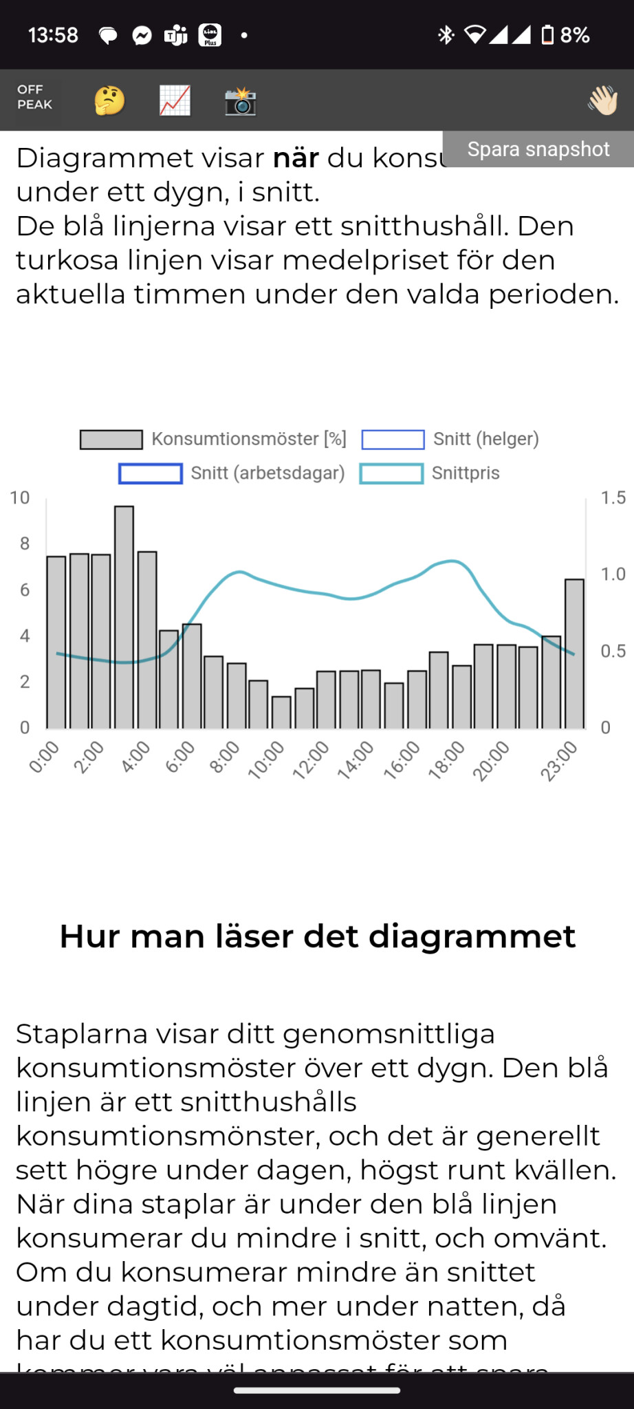 Jag använder mig av Home Assistant och en plug-in där som får Elprisen från Nordpool varje dag kl 12.00 för de nästa 24 timmar. En virtuell sensor läsar data och skapa en signal som är "XLÅG" om prisen är negativ, "LÅG" om prisen är under medelvärdet för 24h eller under 0.5 SEK, "HÖG" om prisen är samman eller högre en medelvärdet och >= 0.5 SEK och "XHÖG" för de 3 dyraste timmarna om dagen och priset är över 1.5 SEK. Signalen kan läsas från alla prylar, t.ex. styrenheten som sitter i värmepumpen eller elbil laddaren. I värmepumpen t.ex. blockeras el-tillsats under XHÖG, och temperaturen sänks till 18 grader under HÖG. Varmvatten kör bara under LÅG och XLÅG. Systemet funkar utmärkt bra så länge (hadde det nu i 2 månader)JDB83 skrev: