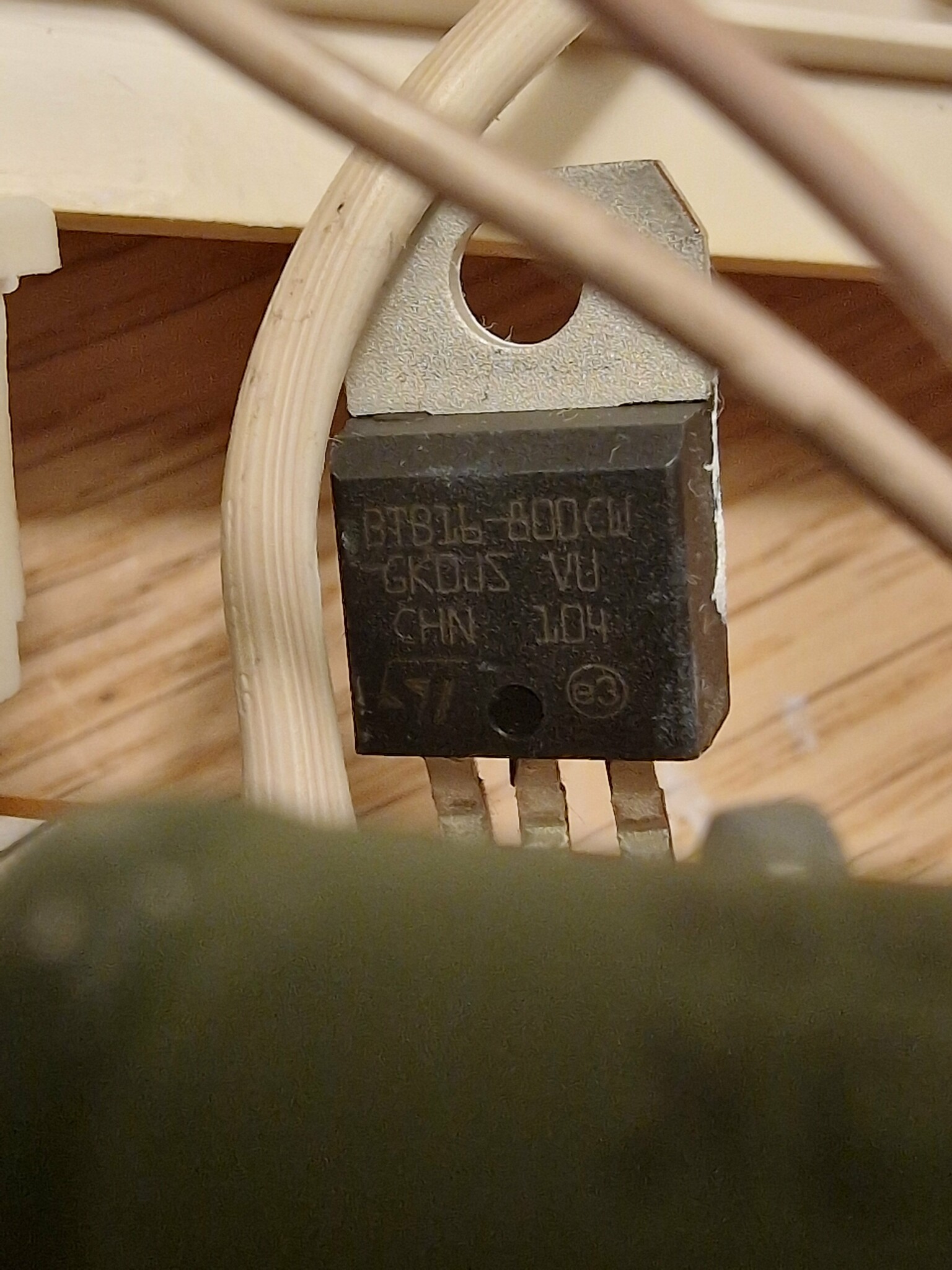 Lysdioden lyser när värmeslingan normalt sätt värmer. Så kan ju vara korrekt att spänningen kommer fram dit, så efter den som det försvinner.A Avemo skrev:Jag vill gärna ta fasta på det här. Lyser den oavbrutet eller beror det på i vilket läge temperaturvredet står? Ofta sitter lysdioden i serie med gaten till triacen så att den lyser när elementet värmer. Så om lysdioden lyser när du skruvar upp vredet och slocknar när du skruvar ner det så fungerar allt på kortet fram till triacen.