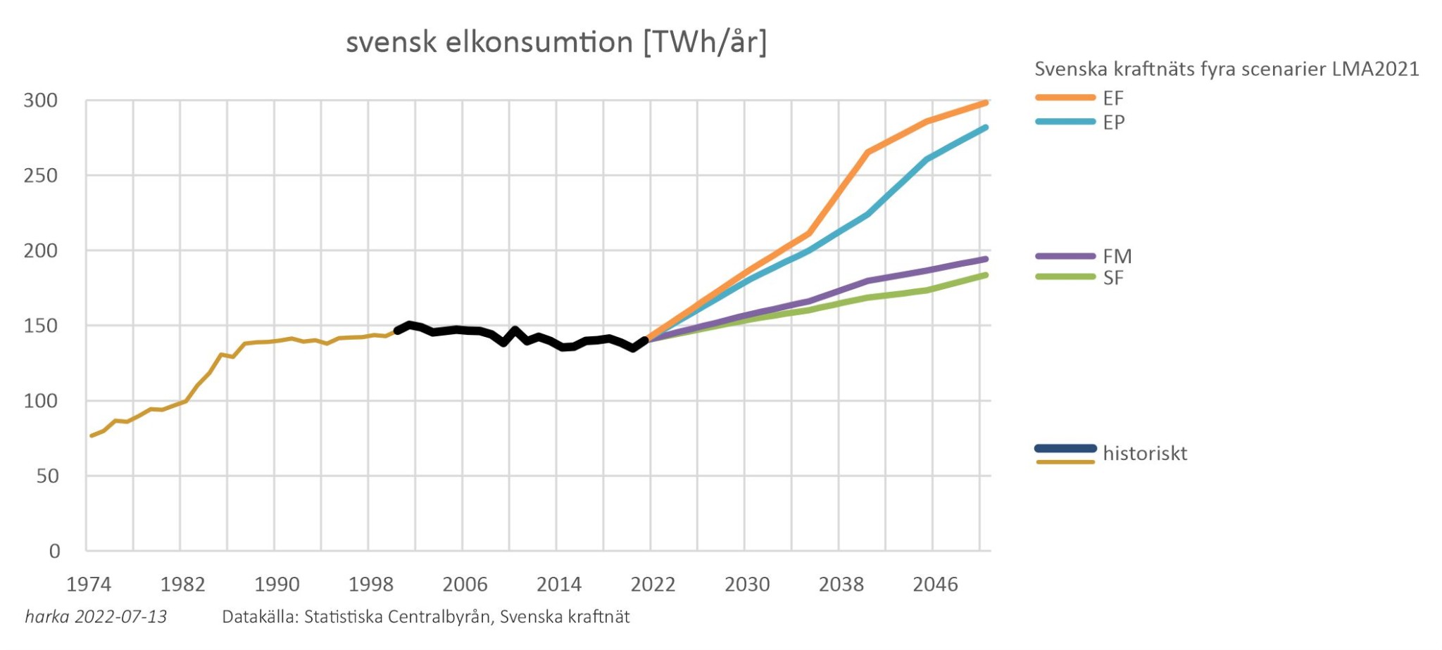 Scenariot är Svenska kraftsnät näst lägsta förbrukningsscenario för framtiden, hoppas någon börjar fundera över vår energisituation innan det är försent.
