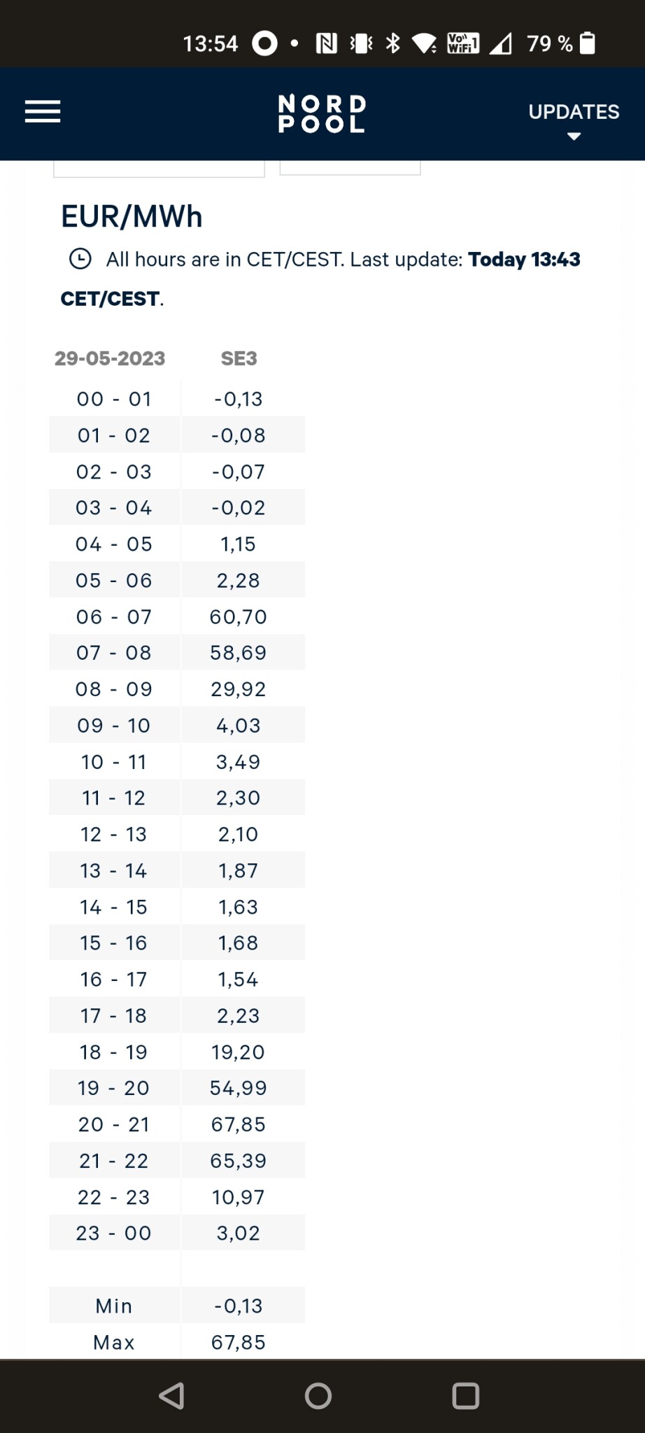 Jag maximerar laddningen av elbilar mm under dagtid idag inför den "dyra" natten (iofs rätt dyr kväll faktiskt., så natten riskerar att bli dyr, vi vet om en halvtimma kanske).
