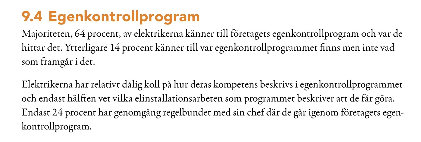 Men, det är ju jobbigt och man jobbar på som vanligt och som man brukar. Dokumentation och rutiner är tydligen inte så viktigt hos elektrikerkåren?