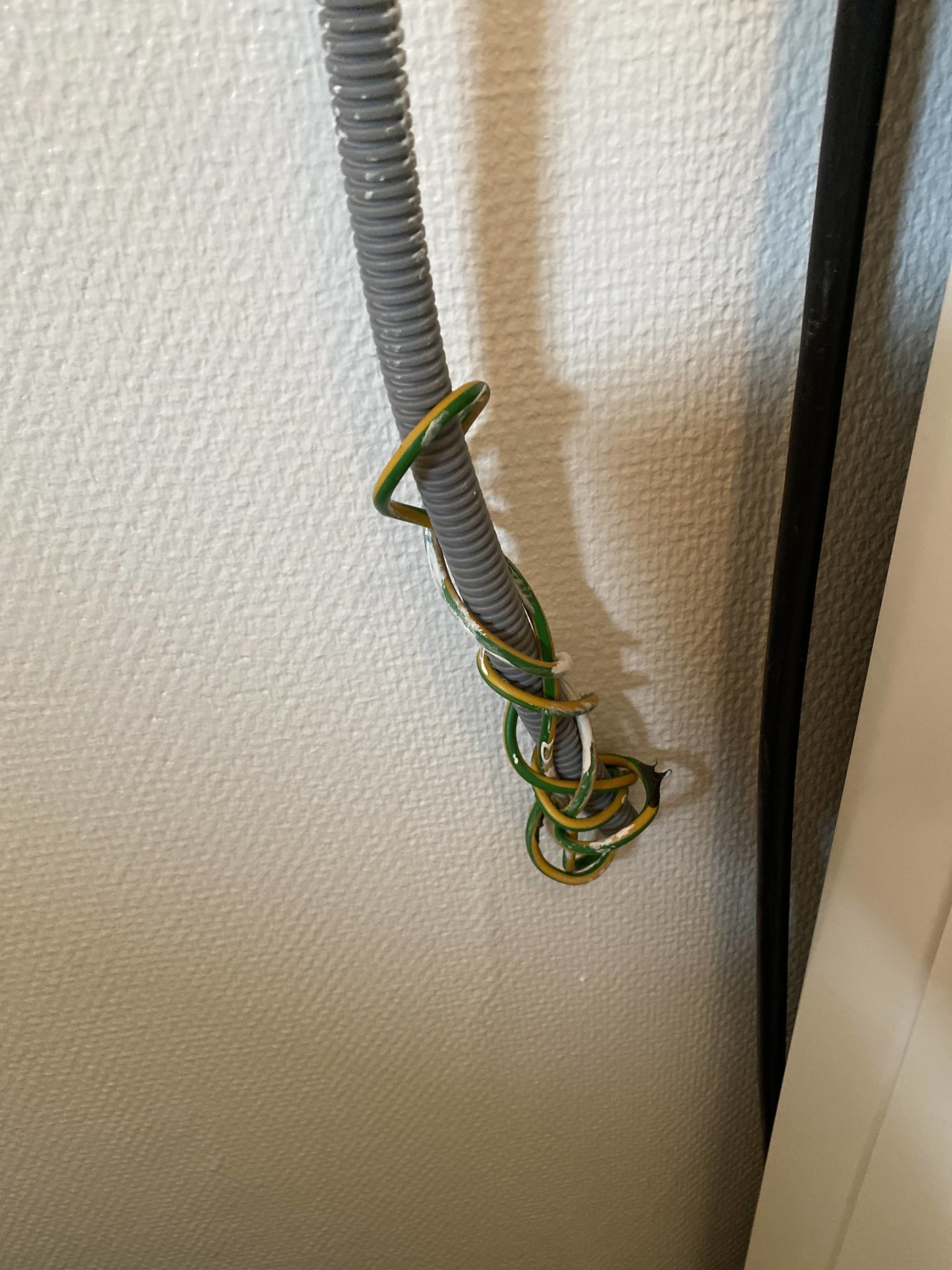 Det är det enda stället som ger stötar, som vi märkt. Elektrikern gjorde någon mätning vid handfatet, men jag är osäker på vad han kom fram till. Han tittade också på några lösa elkablar som hänger bakom värmepumpen, som jag ev trodde kunde påverka, de kommer in genom väggen bakom (se foto). Men han sa att pumpen är jordad. Det sitter en safety switch som är kopplad till pumpen också (se foto).