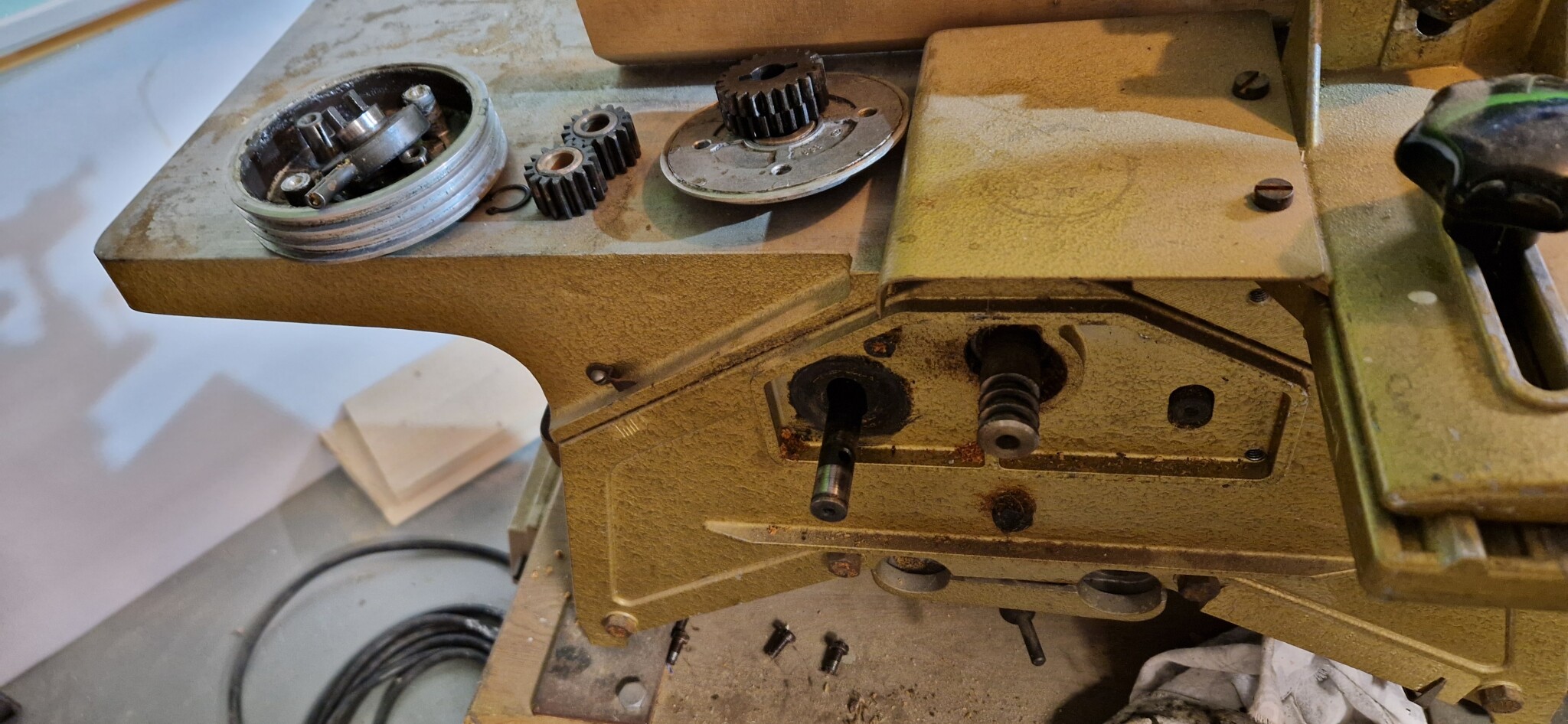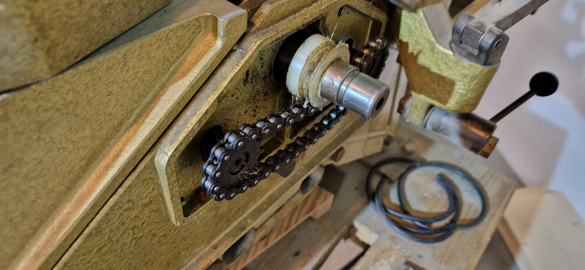 Hej. Har nyköpt en emco. Tror det är en emco 2000. Matningsvalsarna går tungt så jag plockar isär och försöker förstå hur det ska vara. På en sida så sitter det en kedja mellan valsarna. Mot kjedjan i mitten sitter det en plastring som har smält.